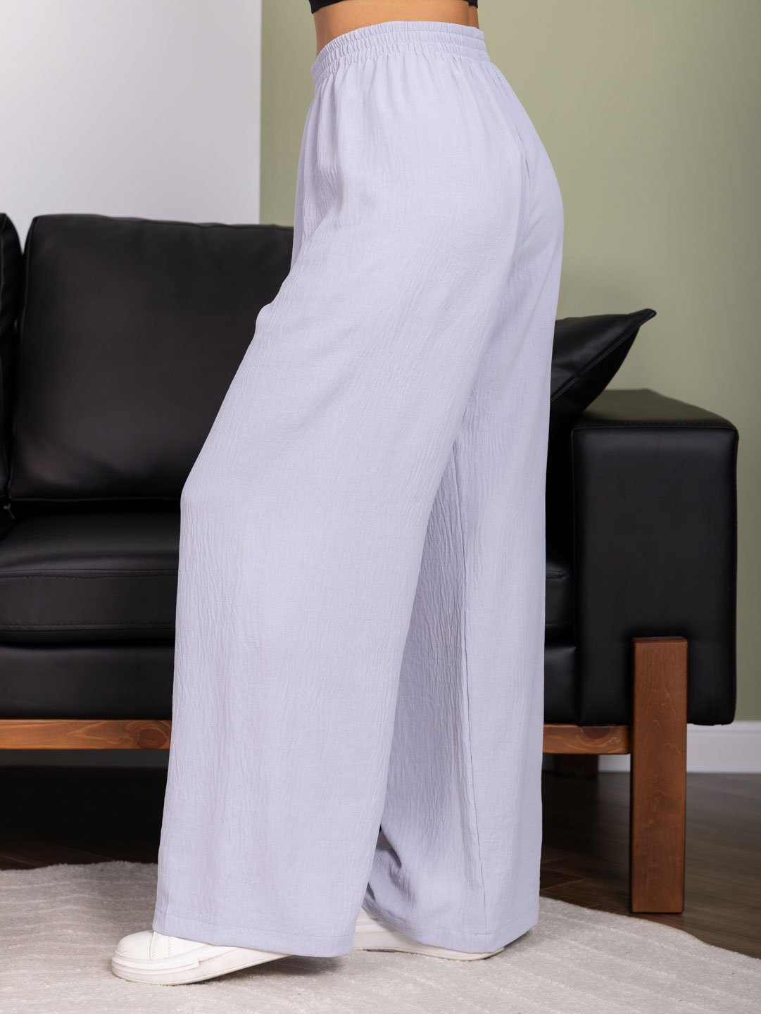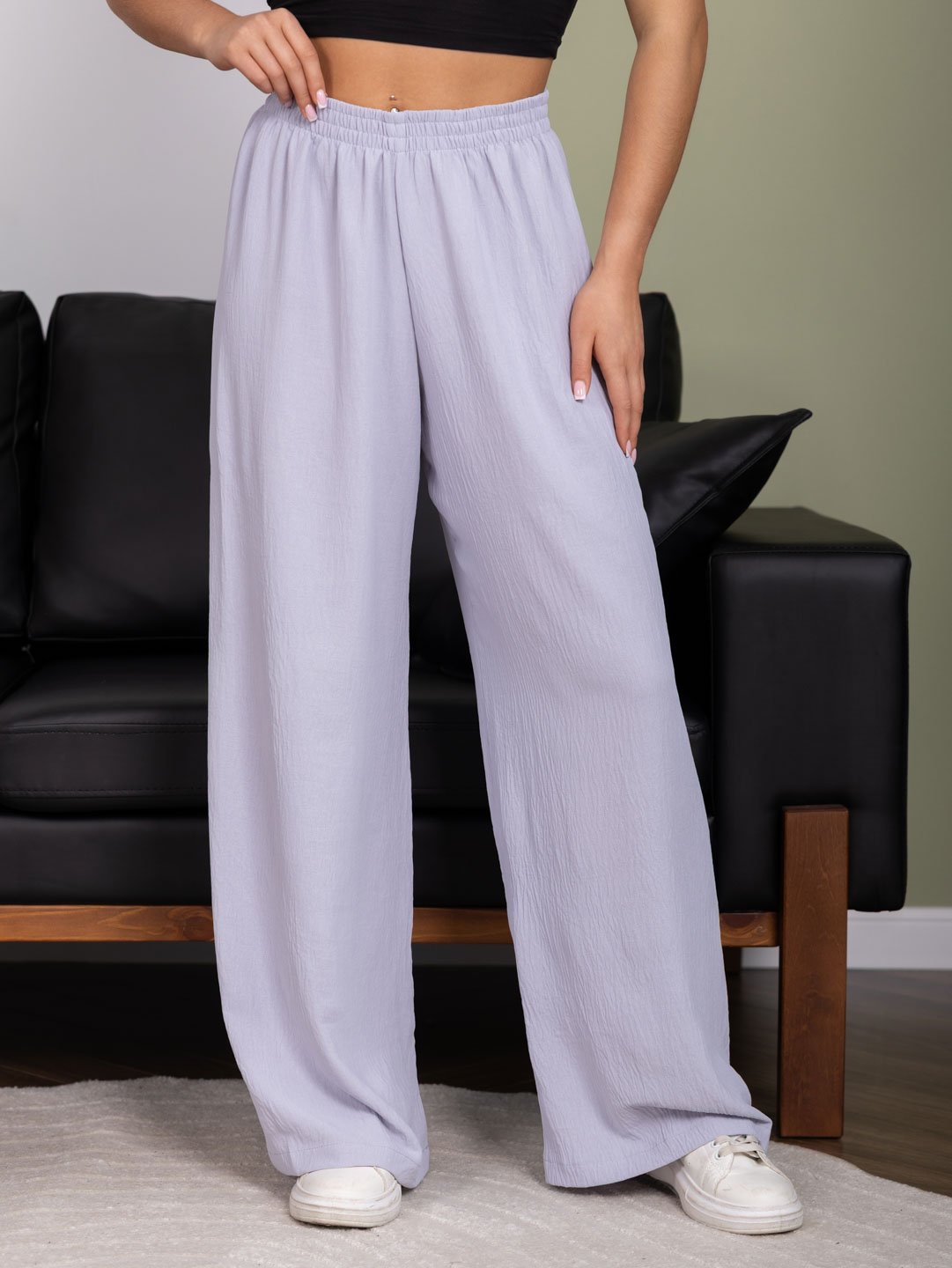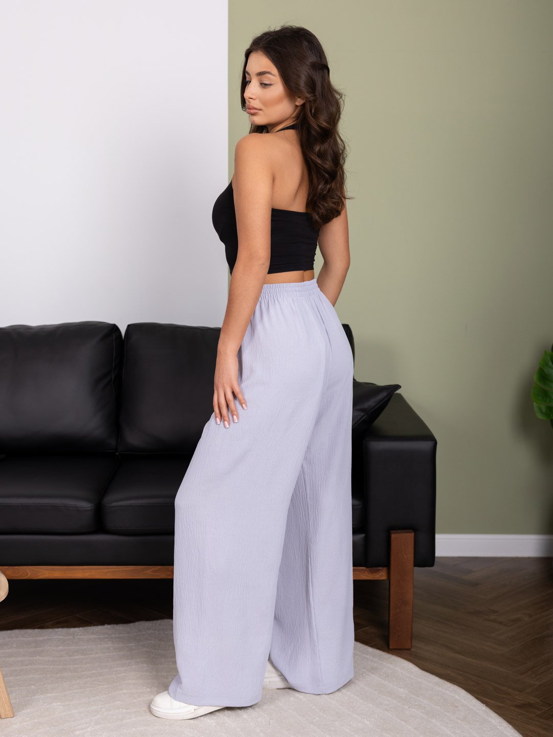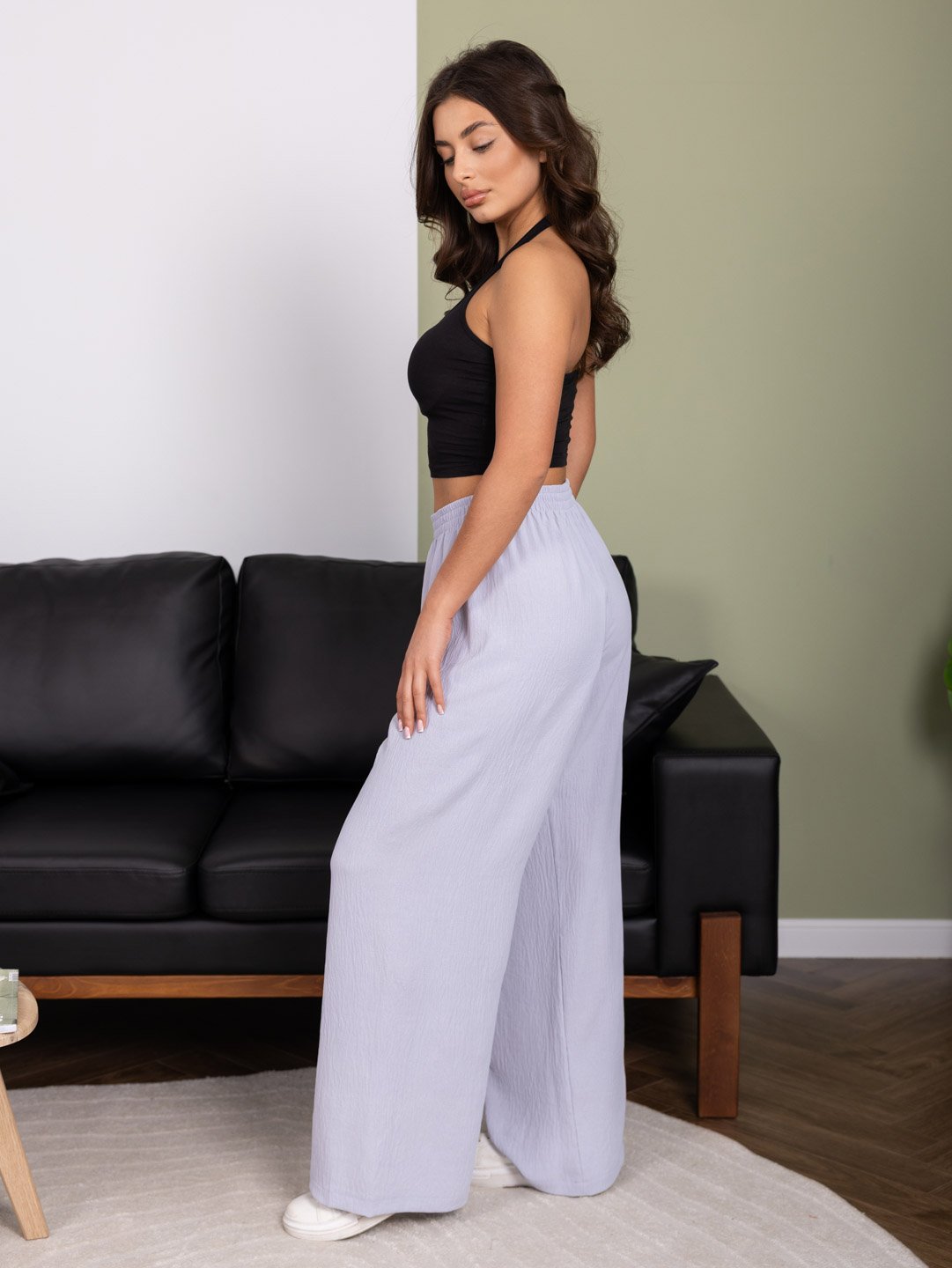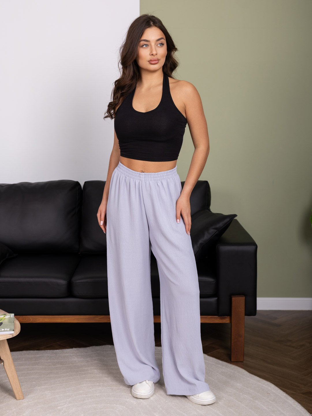 Брюки женские свободного силуэта, в стиле - шаровары, выполненные из мягкого, приятного к телу материала - жатка кантри. Уникальность материала заключается в интересном "мятом" эффекте, что придает брюкам неповторимый стиль и практичность. Пояс изделия на резинке, для надежной фиксации на талии и повышенного комфорта при носке.