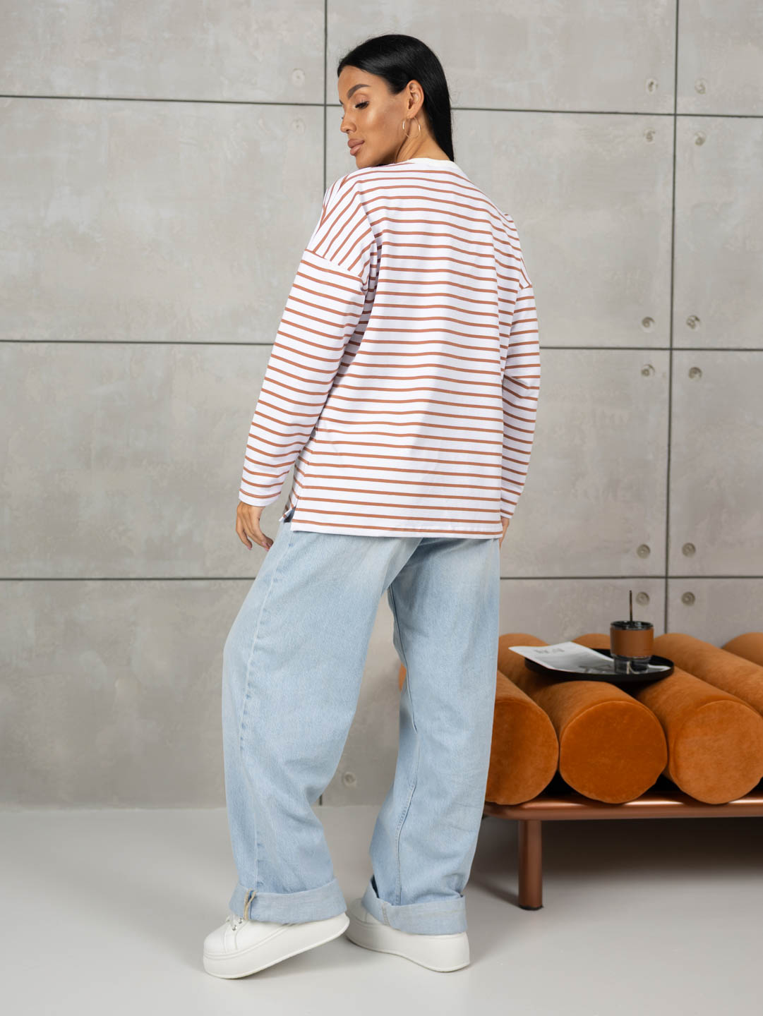 Базовая тельняшка идеально подойдет для составления множества модных аутфитов. Тельняшка в современном прочтении-это обязательно "оверсайз", качественный и невероятно комфортный трикотаж, удлиненные рукава и безупречная посадка! Модель выполнена из европейского трикотажного полотна, качества пенье.