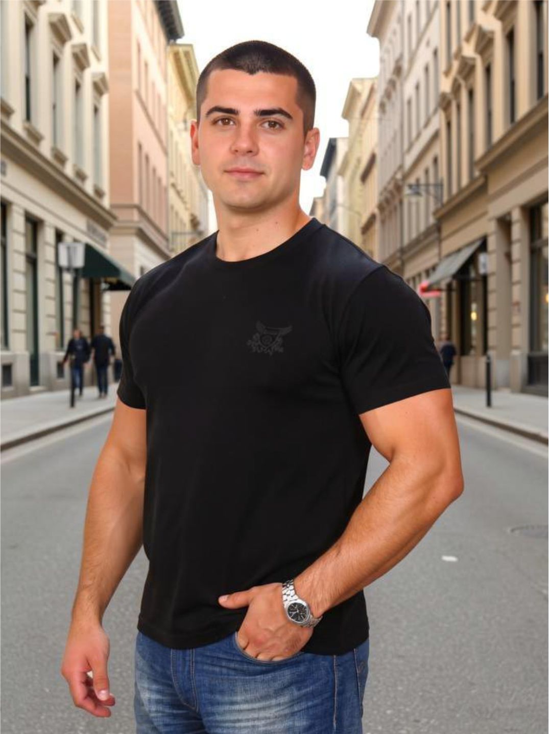 Футболка мужская с коротким рукавом и круглым воротом, плечевой шов усиленный. Изделие выполнено из плотной высококачественной рибаны. Модная, приятная к телу футболка с современным принтом подойдет на любой случай.