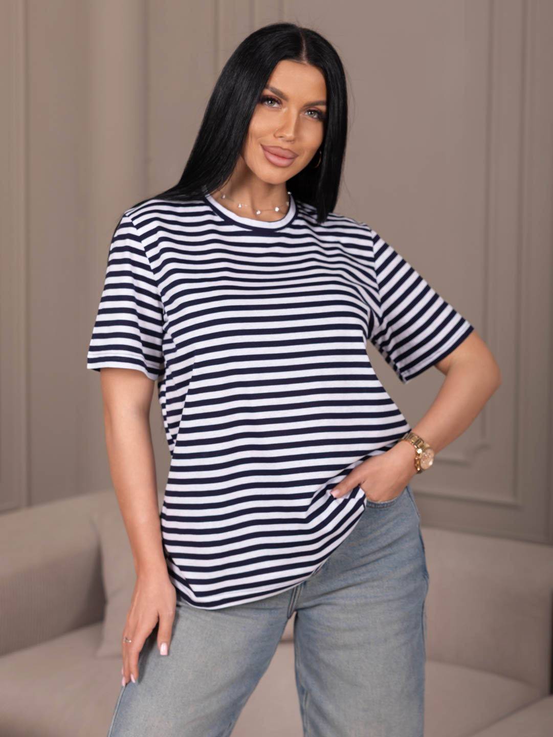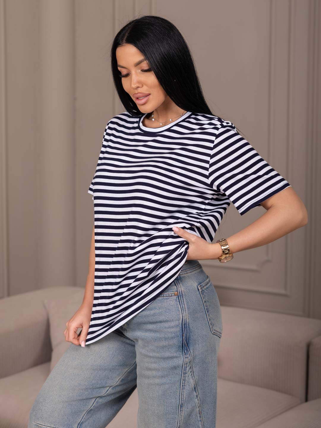 Уникальная футболка из кулирки с цельнокроеным рукавом - идеальный выбор для стильных и модных девушек! Удобная и практичная, эта футболка будет отлично смотреться как с джинсами, так и с юбкой. Почувствуйте себя стильной и уверенной в любой ситуации с этой универсальной футболкой!