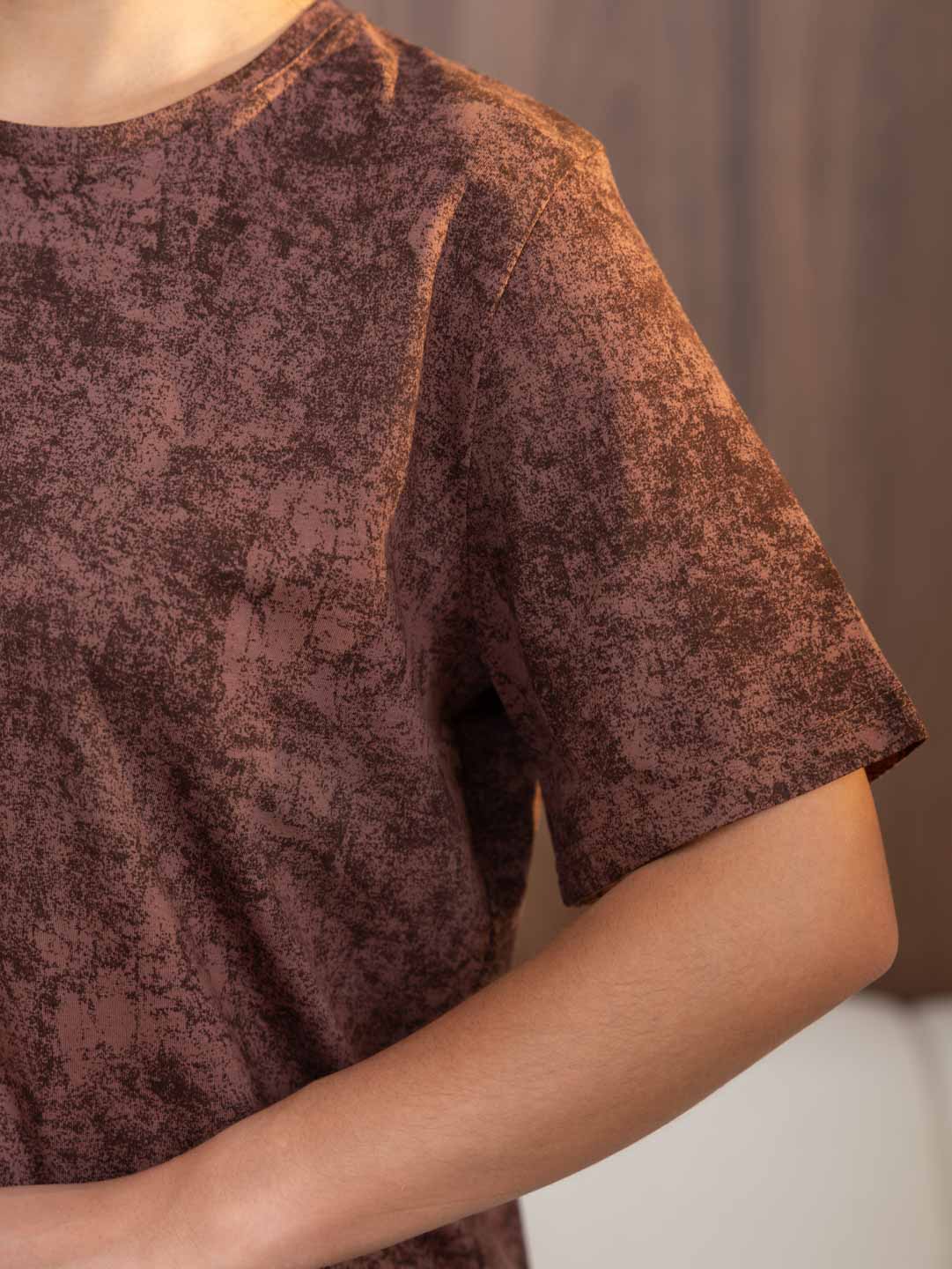 Базовая футболка с втачным рукавом, О-образной горловиной, до середины бедра. Рост модели 165см.