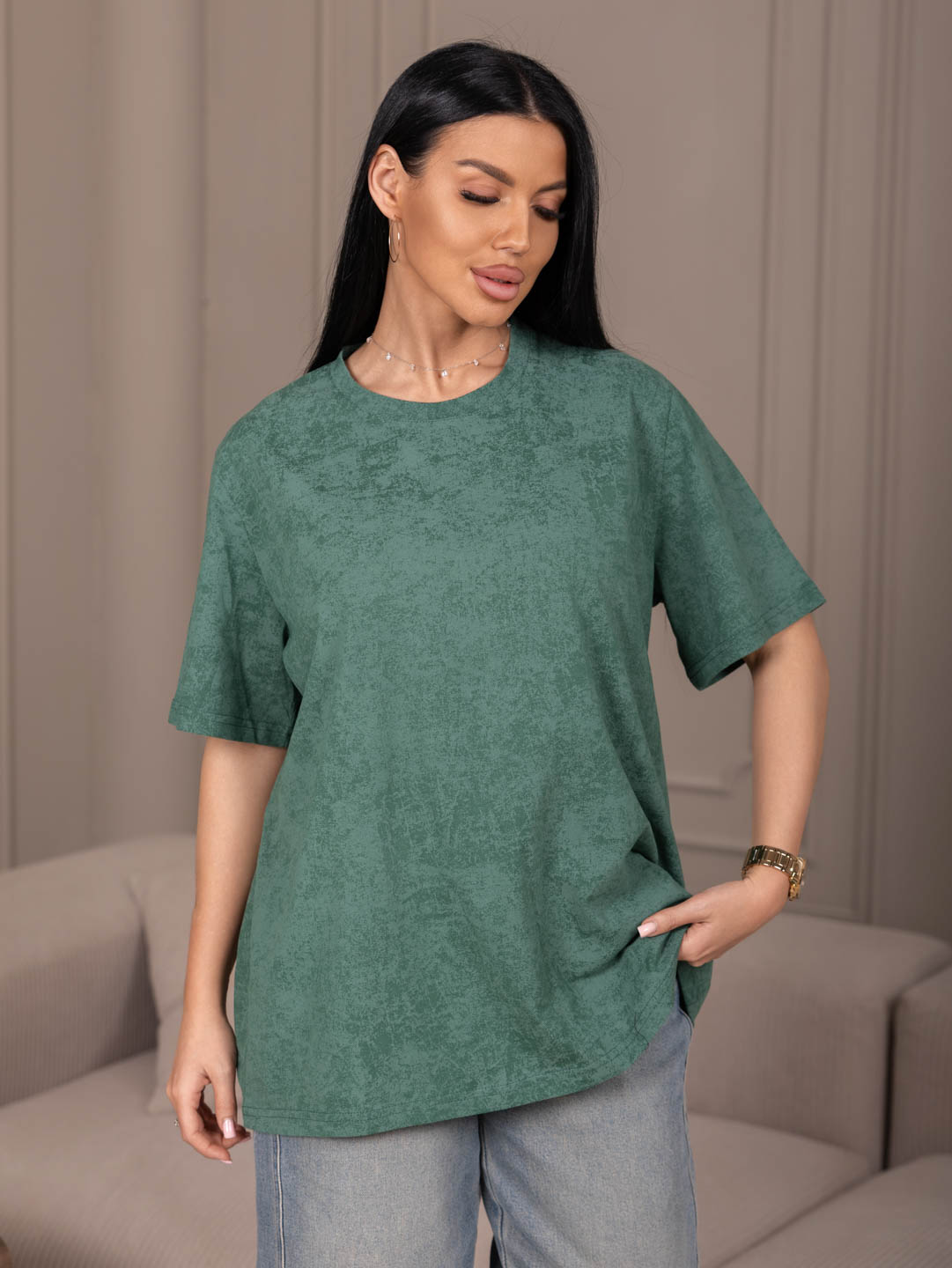 Уникальная футболка из кулирки с цельнокроеным рукавом - идеальный выбор для стильных и модных девушек! Удобная и практичная, эта футболка будет отлично смотреться как с джинсами, так и с юбкой. Почувствуйте себя стильной и уверенной в любой ситуации с этой универсальной футболкой!