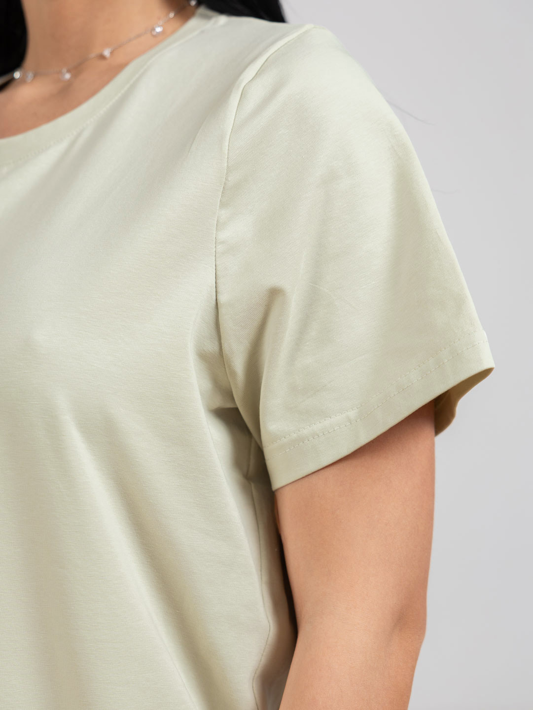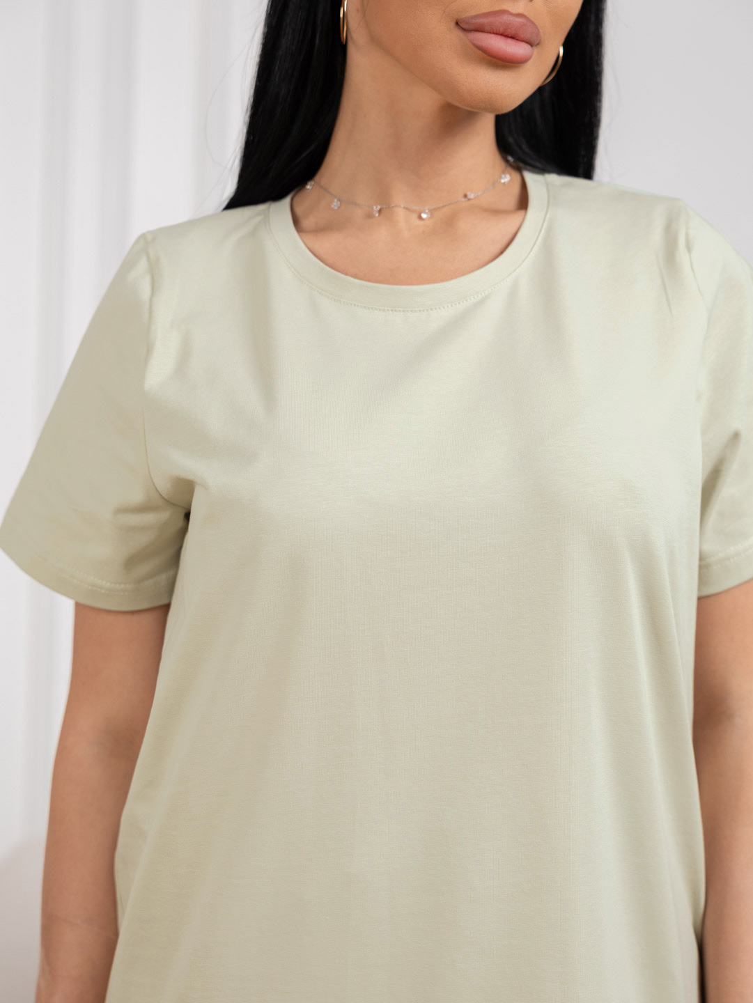 Женская базовая футболка трендового оттенка, с втачным рукавом, О-образной горловиной, длиной до середины бедра.