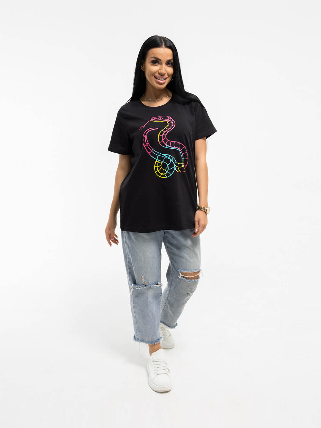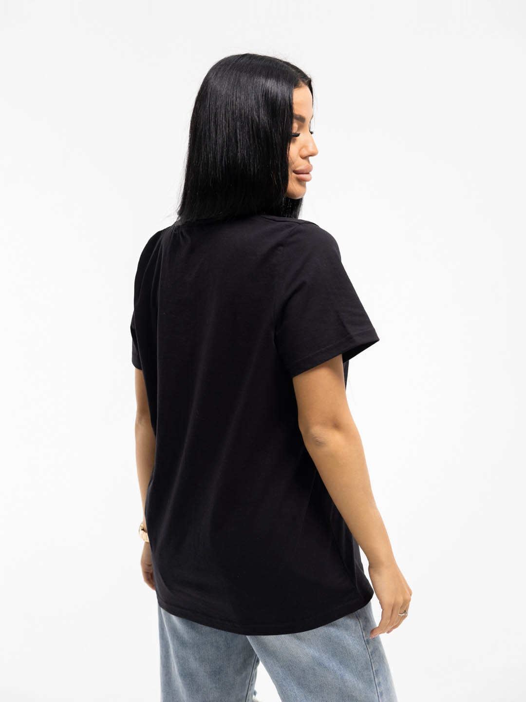 Эта удобная и стильная футболка черного цвета из 100% хлопка станет незаменимой в вашем гардеробе. Идеально подойдет для повседневного образа благодаря своему универсальному дизайну и комфортному материалу. Почувствуйте легкость и свежесть в этой элегантной футболке!