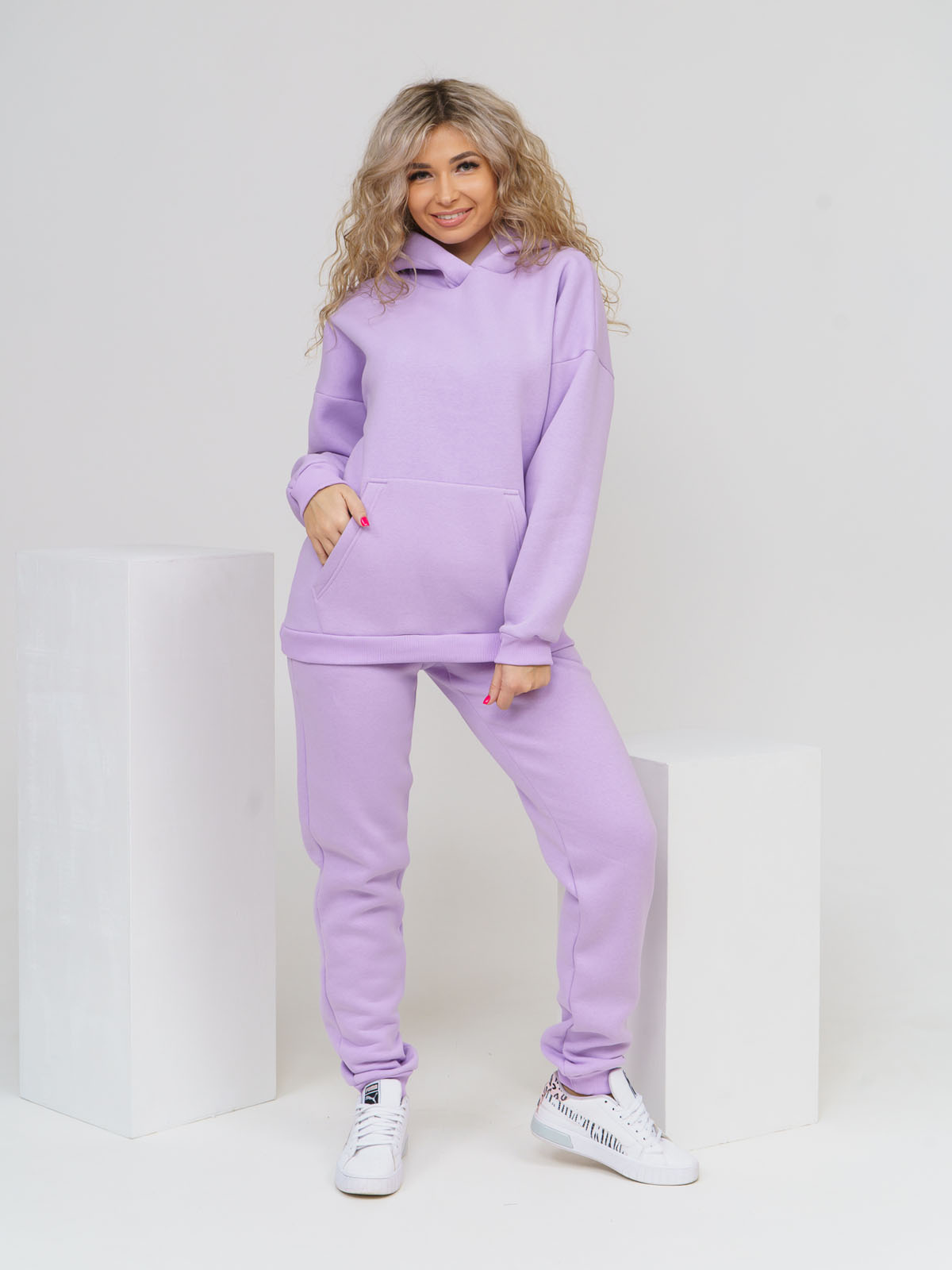 Женский трикотажный костюм из футера с начесом. Толстовка в стиле oversize со спущенной линией плеча и капюшоном. На полочке карман - кенгуру. Брюки полуприлегающего силуэта, с боковыми карманами с отрезным бочком. Отделка из ткани в рубчик, по низу толстовки, рукавам и по низу брюк. Костюм идеально подойдет для сезона осень-зима, в нем вы будете чувствовать себя комфортно в прохладную погоду. Модные тренды от бренда Текс-плюс.Ru придадут вашему образу неповторимость, а премиальное качество подарит незабываемое ощущение комфорта.