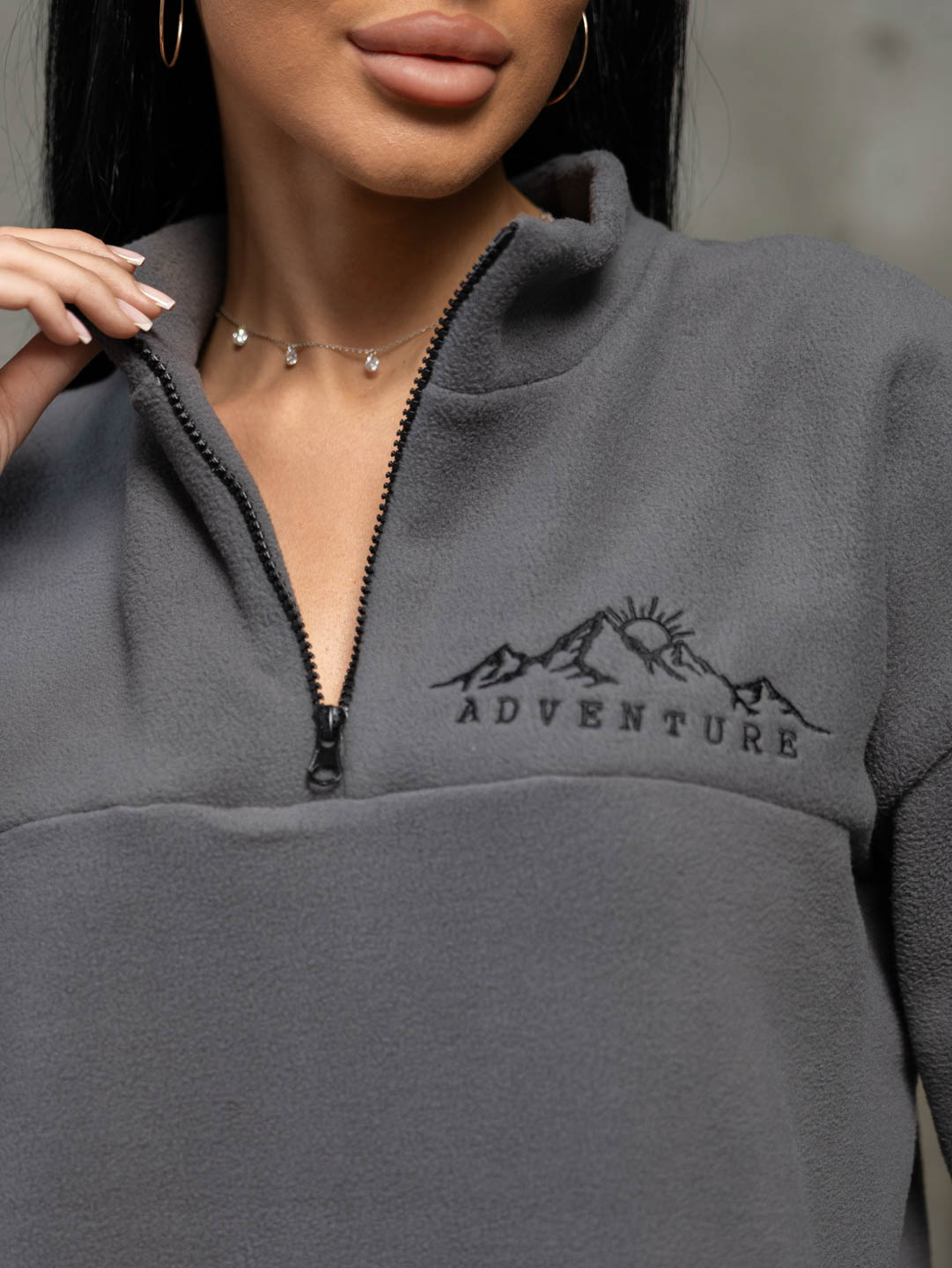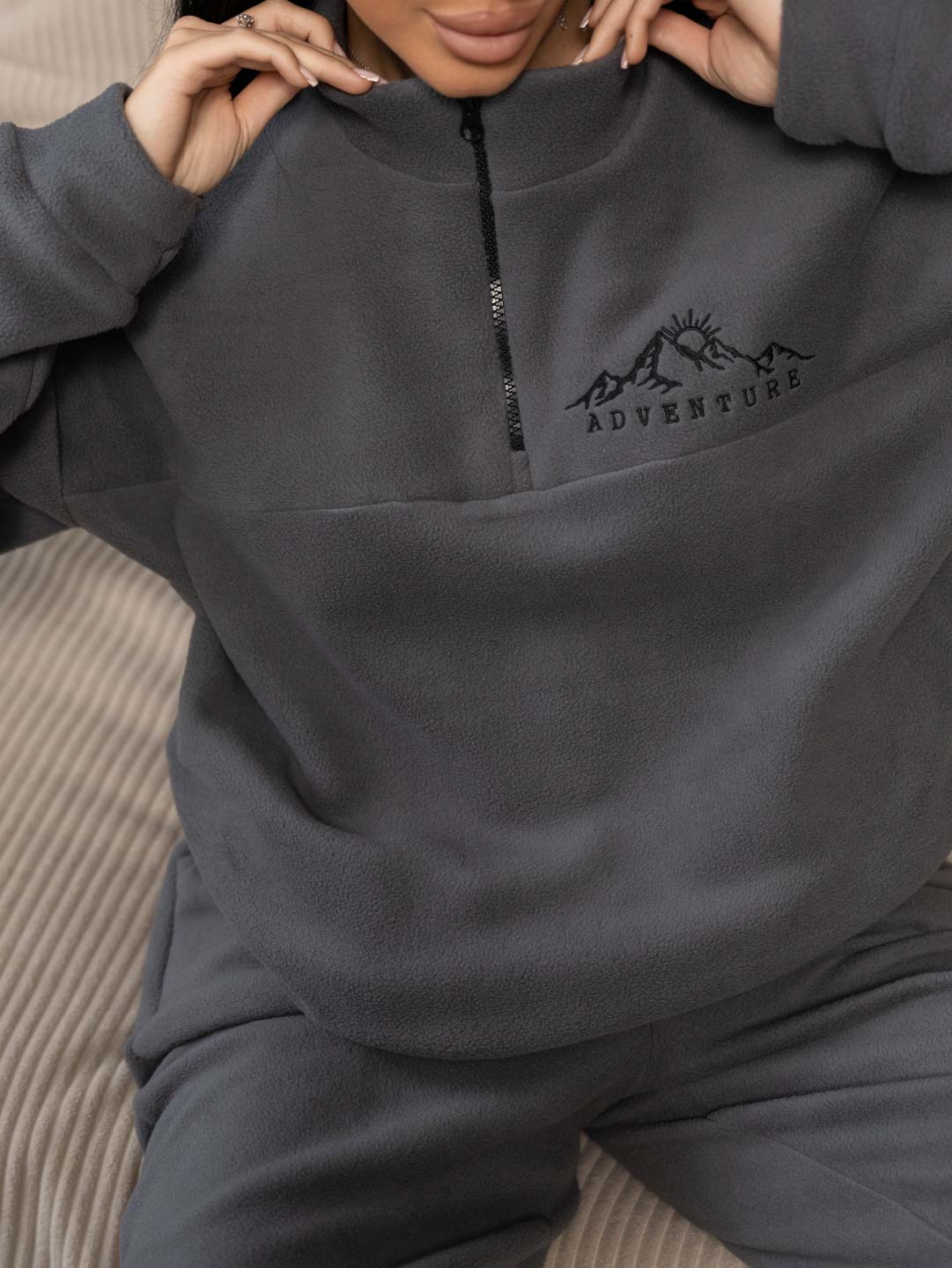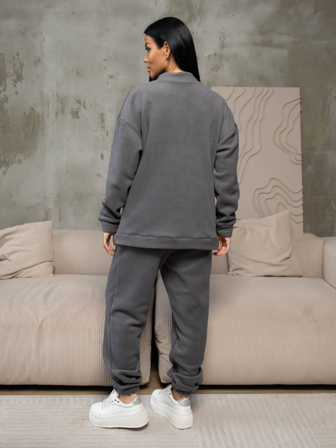 Костюм женский утепленный. Худи в стиле "оверсайз", с воротником - стойка на молнии, спущенным рукавом на манжетах и вышивкой на груди. Брюки - прямые, с удобным поясом на резинке, для лучшей посадки, и глубокими карманами с отрезным бочком. Низ брюк на резинке. Данный костюм - это уникальное сочетание стиля и комфорта в одной модели.