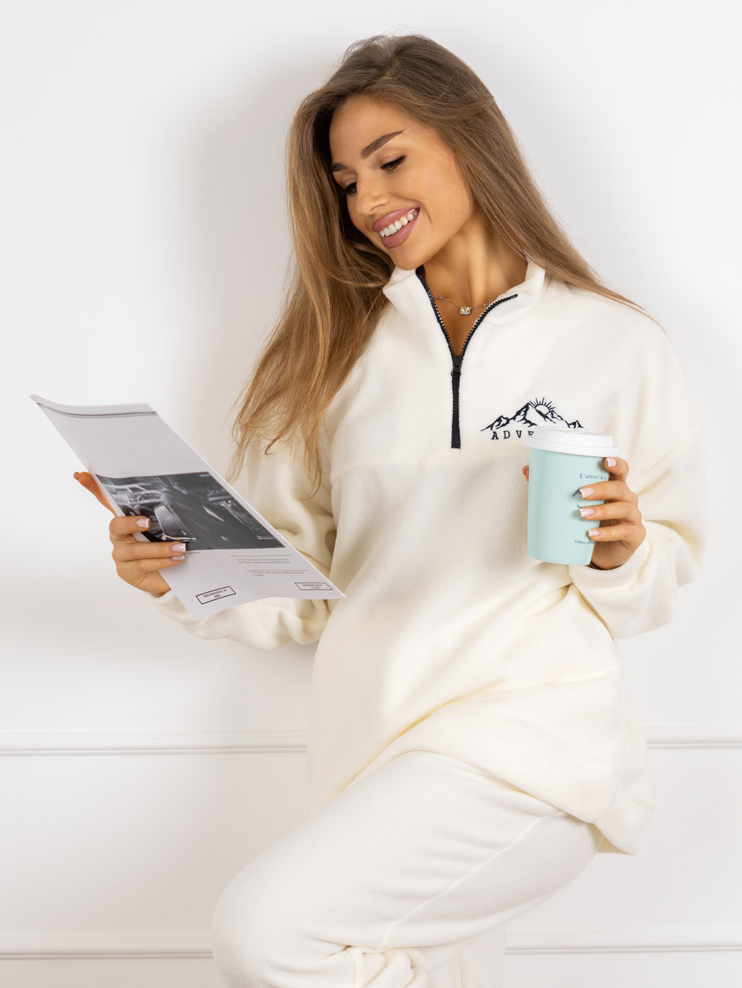 Костюм женский утепленный. Худи в стиле "оверсайз", с воротником - стойка на молнии, спущенным рукавом на манжетах и вышивкой на груди. Брюки - прямые, с удобным поясом на резинке, для лучшей посадки, и глубокими карманами с отрезным бочком. Низ брюк на резинке. Данный костюм - это уникальное сочетание стиля и комфорта в одной модели.