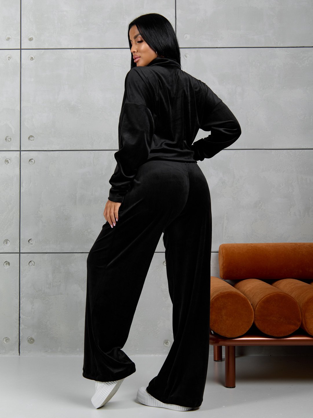 Женский велюровый костюм: худи и брюки из приятного к телу материала с качественной фурнитурой. Толстовка с воротником стойкой окантованной внутри , спущенным плечом, широкой манжетой по рукаву и резинкой по низу изделия. Брюки на поясе-резинке с несколькими декоративным строчками, карманами в боковых швах с отрезным бочком и затяжкой по низу брюк.