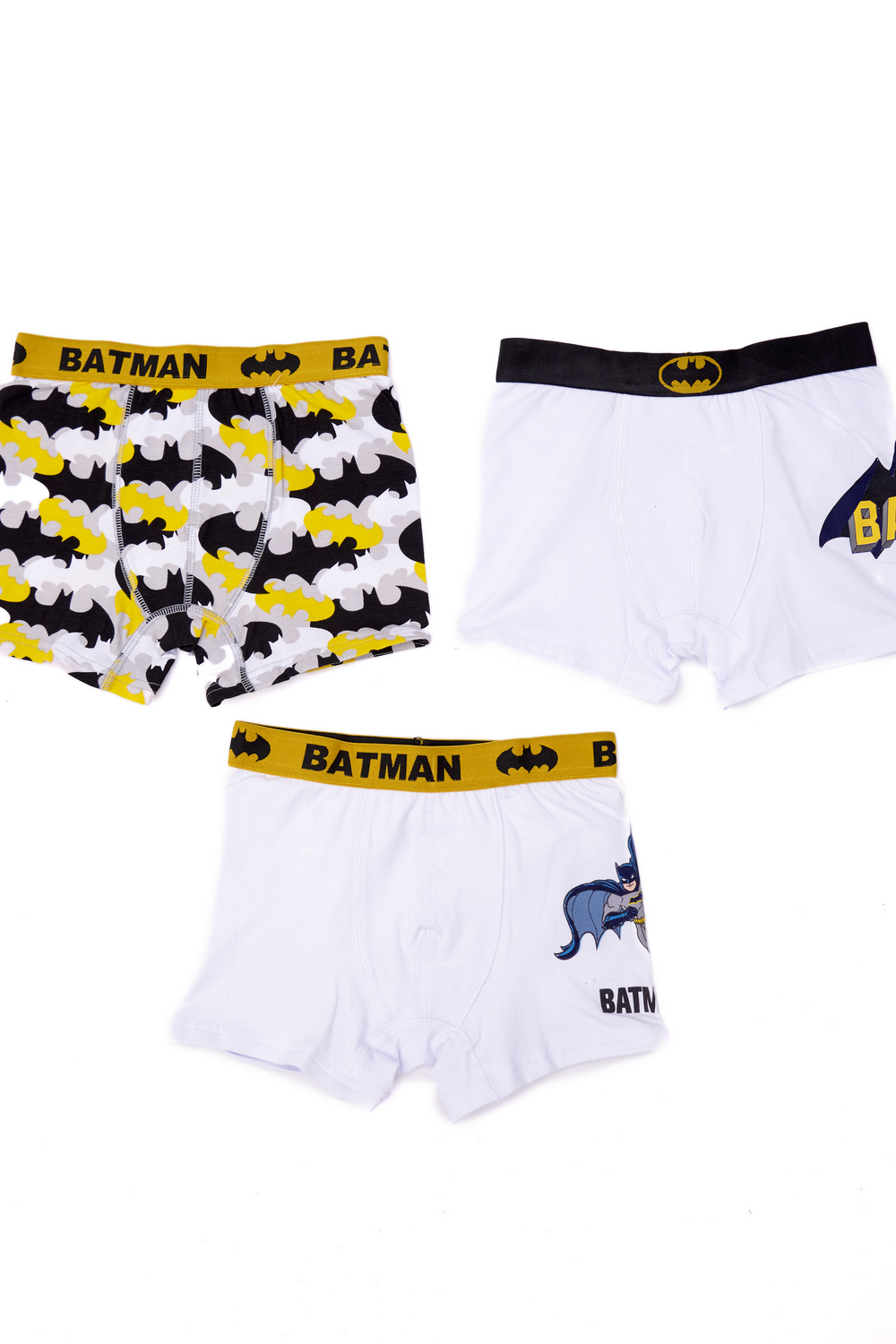 Представляем УНИКАЛЬНЫЙ ХИТ – коллекцию нижнего белья для мальчиков BATMAN. Комплект трусов для мальчиков BATMAN выполнен из мягкого и приятного к телу трикотажа. В набор входит 3 шт. с принтом и яркой эластичной резинкой. Удобные и практичные трусики для мальчика — отличный вариант для любого малыша. В коллекции одежды BATMAN представлены также футболки, лонгсливы, майки, пижамы, брюки для мальчика и многое другое.