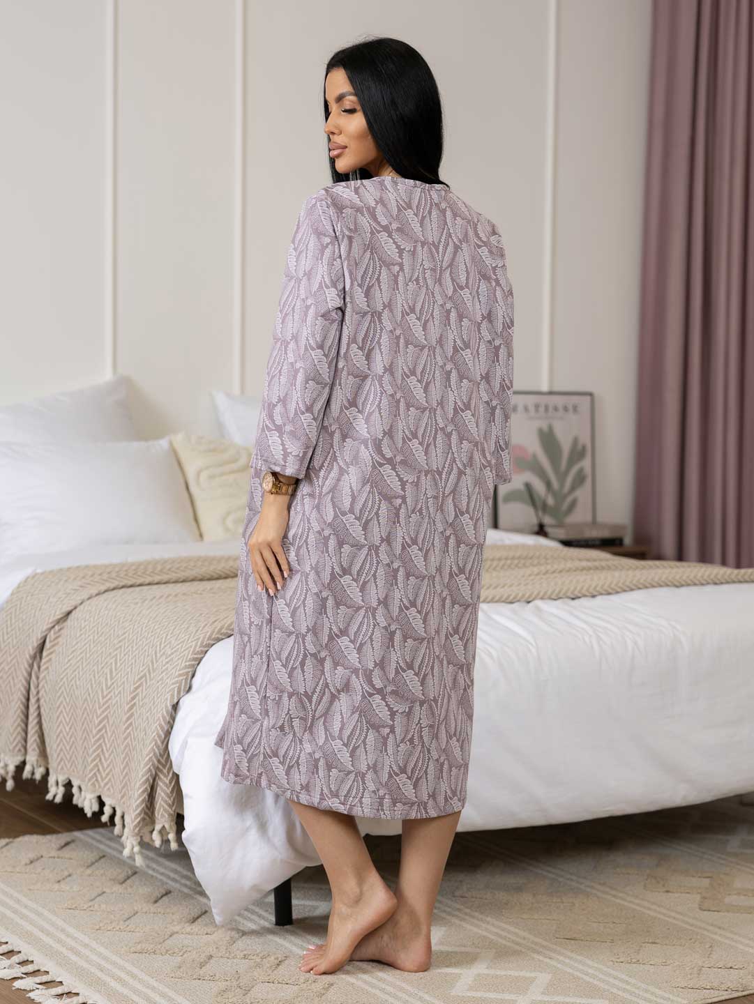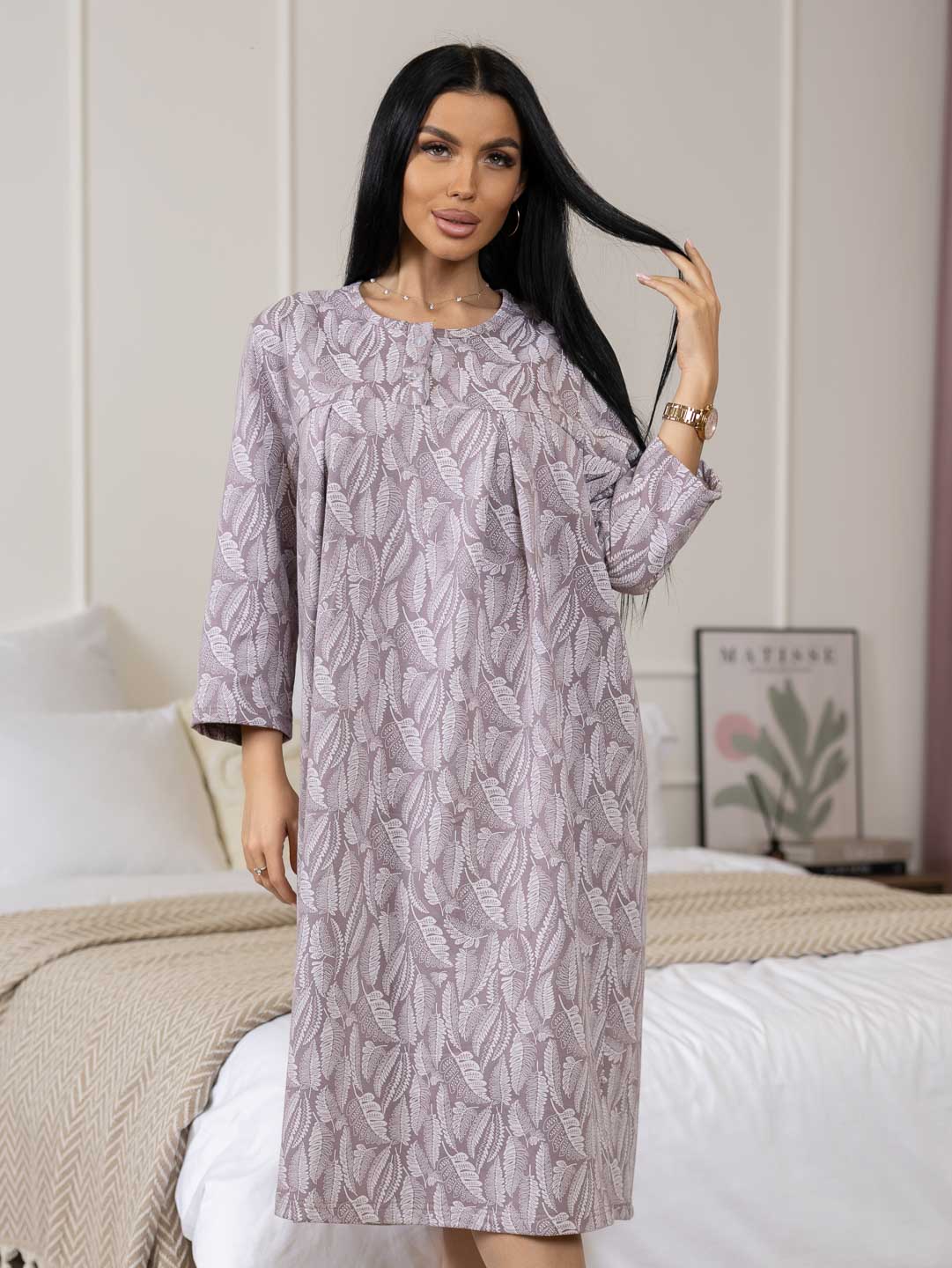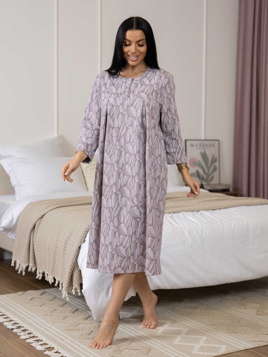 Женская ночная сорочка длиной ниже колена с рукавом 3/4 и округлой горловиной на пуговицах. Материал имеет притную к телу изнанку, благодаря которой вы не замерзните даже в самые морозные дни.