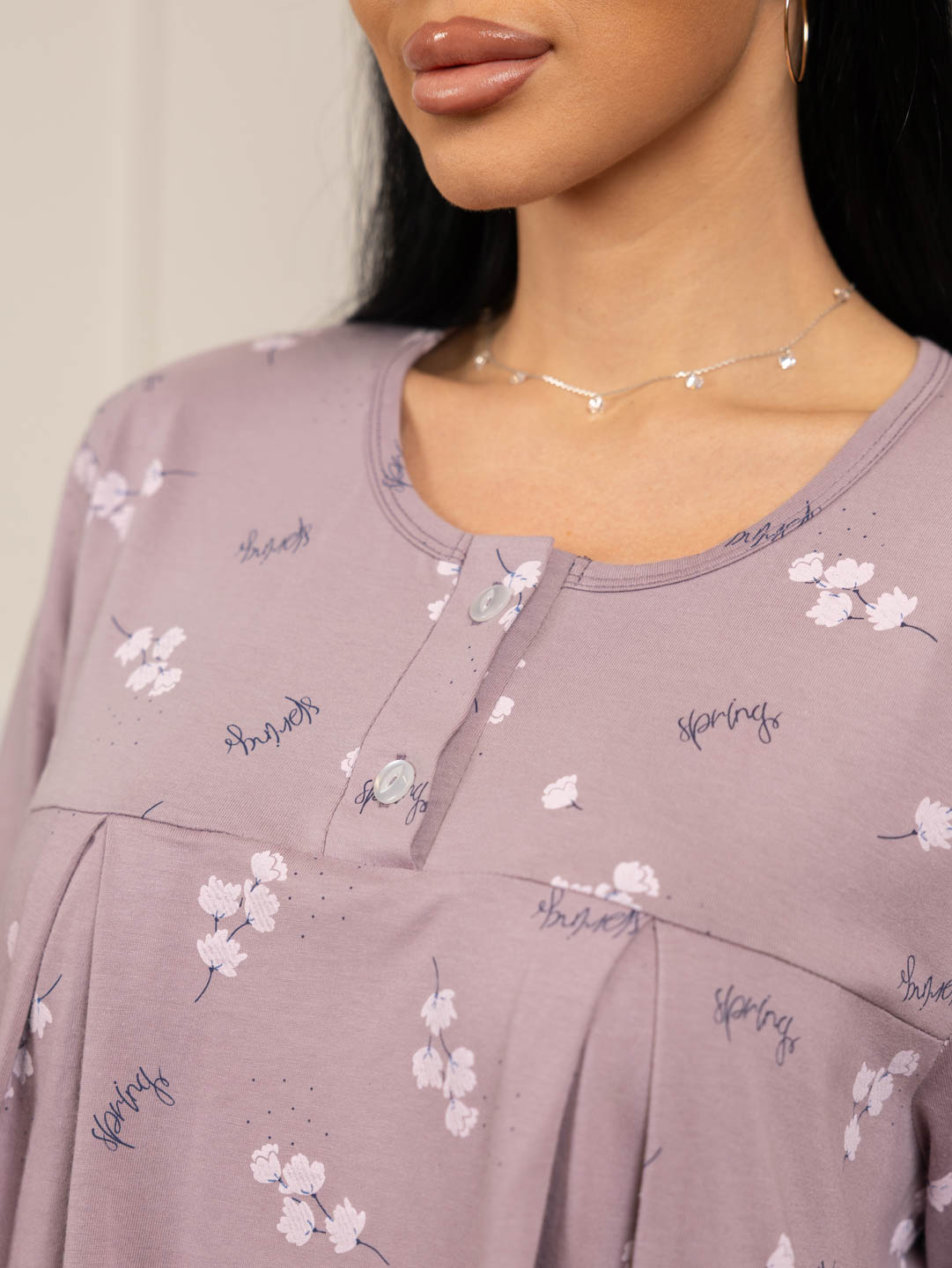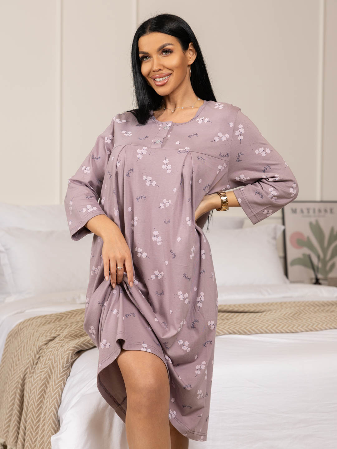 Ночная женская сорочка из кулирки, свободного силуэта, длиной ниже колена. Вырез горловины О-образный.