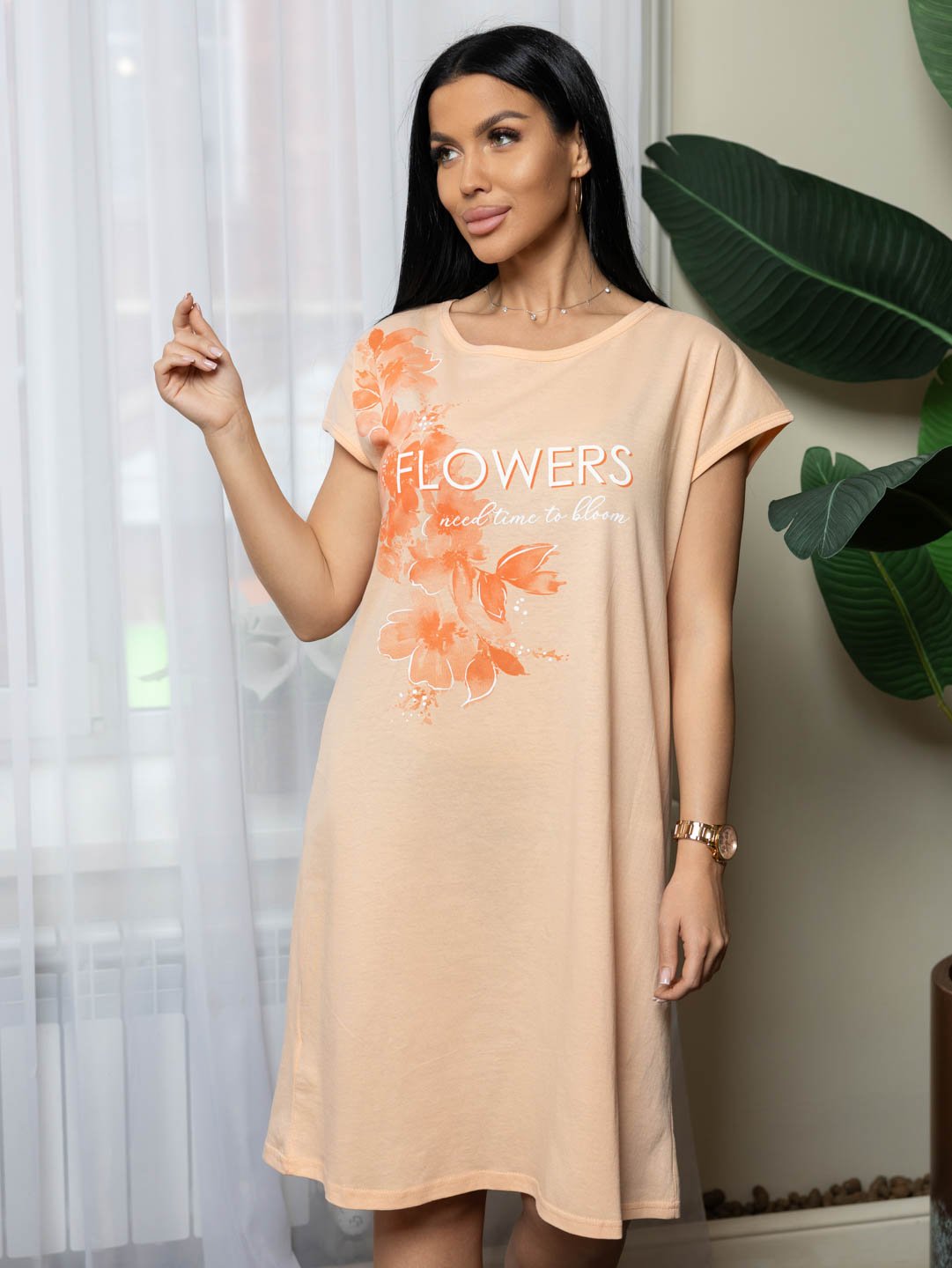 Ночная сорочка из хлопка, свободной силуэтной формы, длиной до колена с О-образной горловиной и красивым принтом спереди.