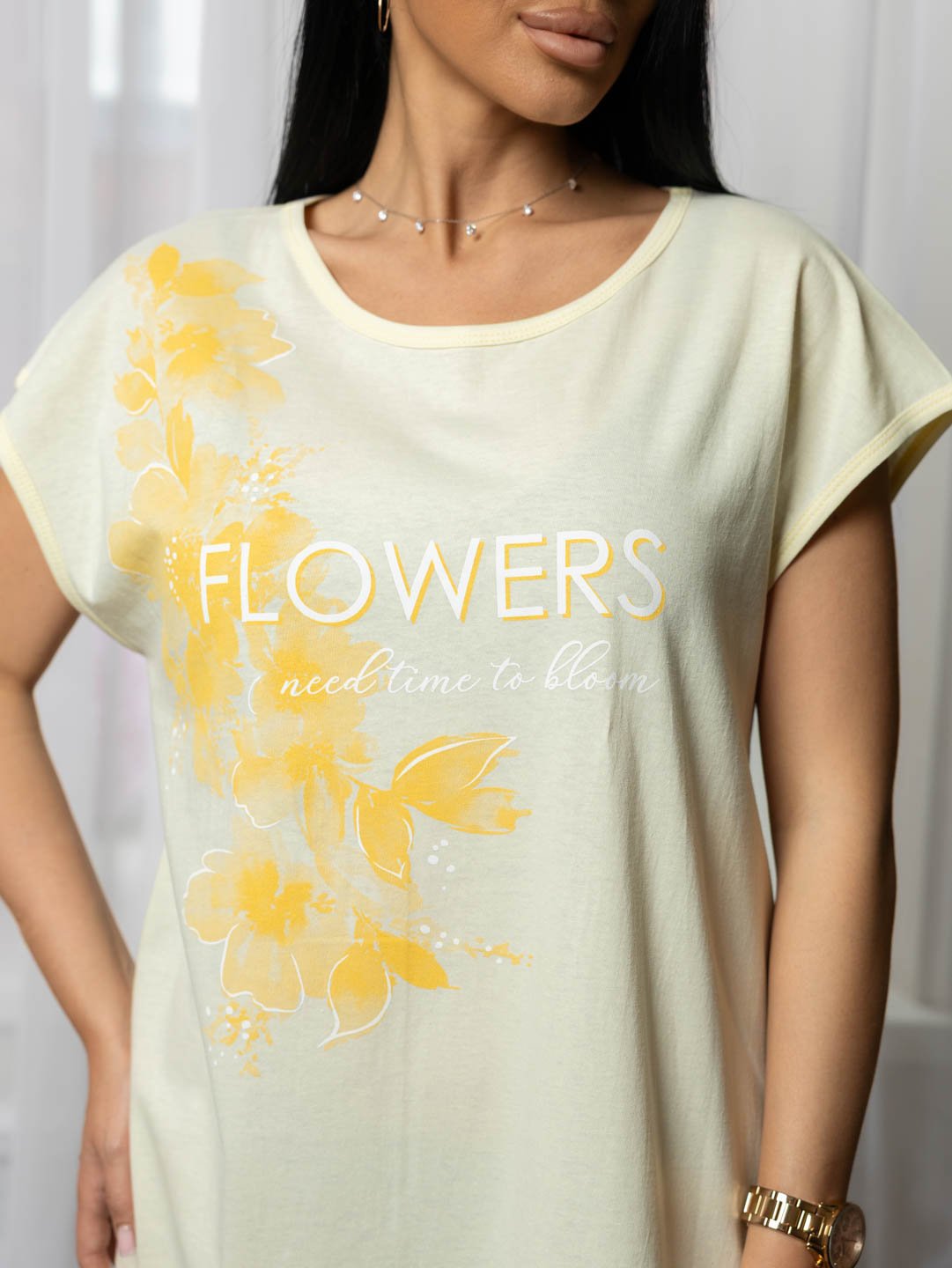 Ночная сорочка из хлопка, свободной силуэтной формы, длиной до колена с О-образной горловиной и красивым принтом спереди.