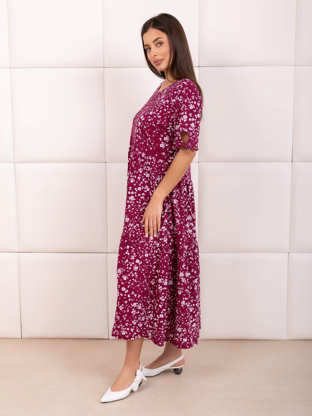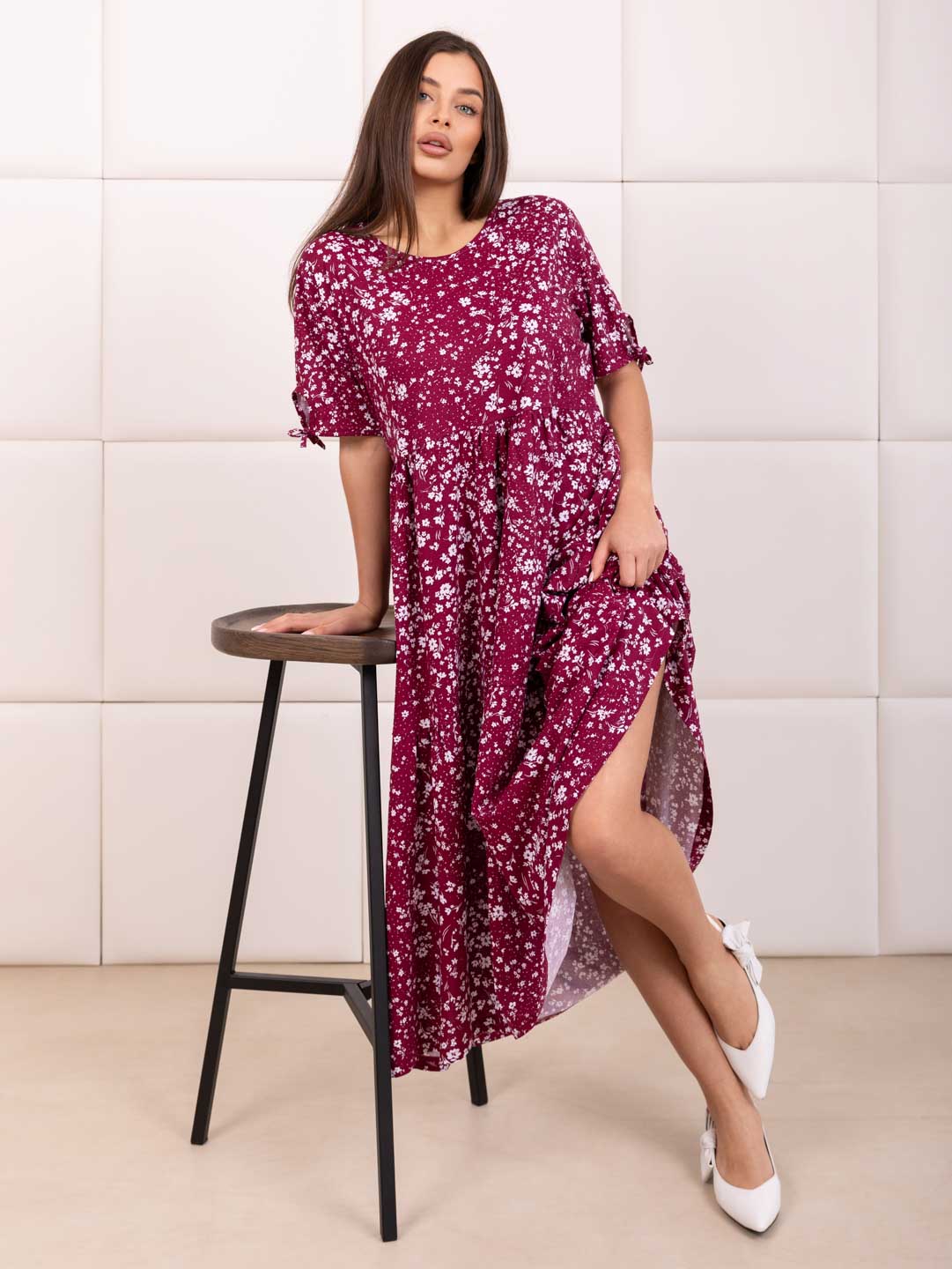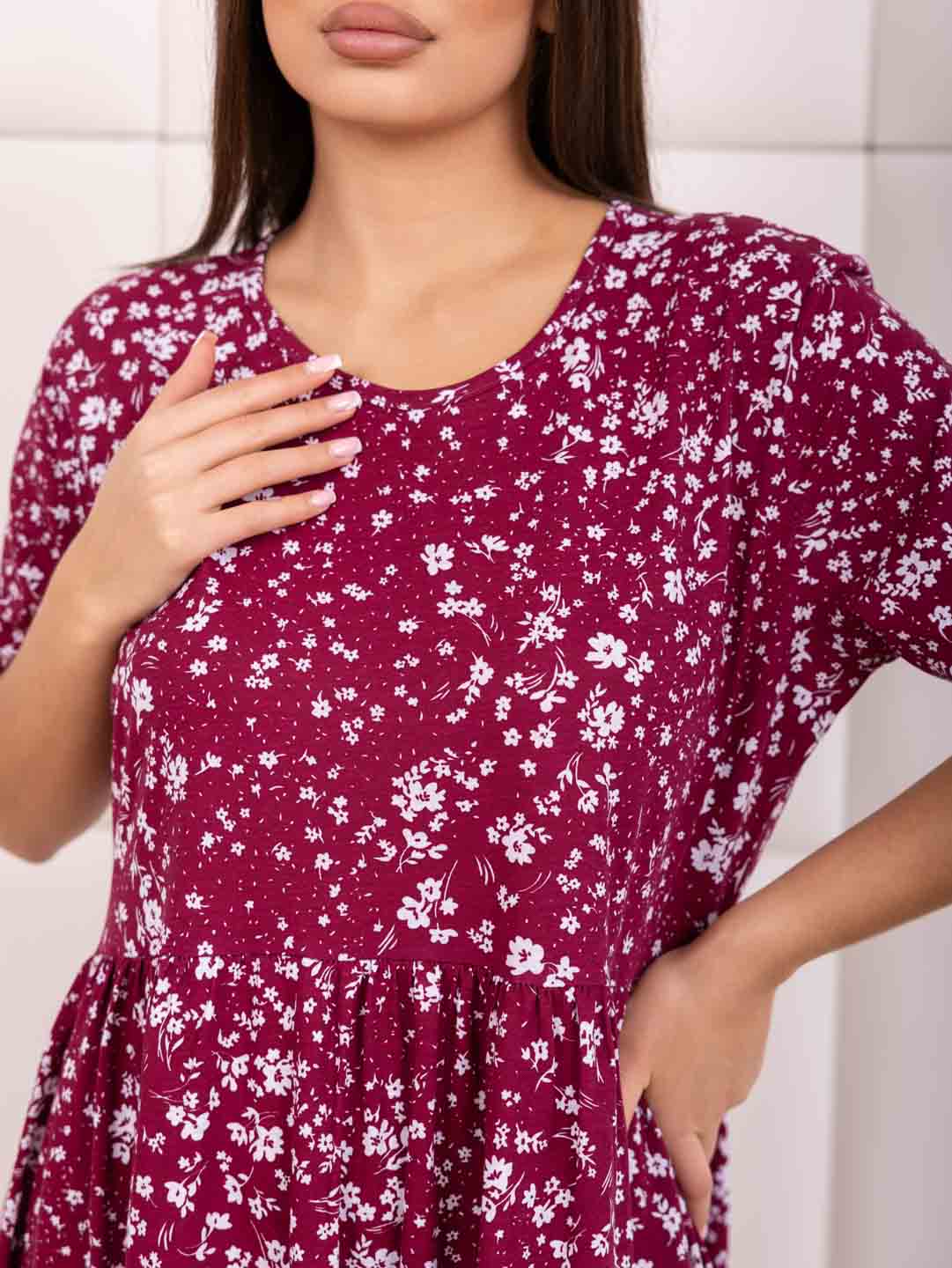 Хотите выглядеть стильно и комфортно этим летом? Предлагаем вам наше летнее женское хлопковое платье из кулирки! Кулирка – натуральное хлопковое полотно высокого качества. Идеальное сочетание легкости, комфорта и элегантности. Свободный крой платья позволит вам чувствовать себя уверенно. Короткий рукав делает платье универсальным и подходящим для повседневной носки, несколько рядов воланов добавит кокетливости в образ.