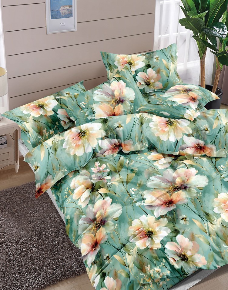 Данный комплект постельного белья выполнен из материала "Бязь". Бязь – хлопчатобумажная ткань , которая имеет множество положительных качеств. Эта ткань не вызывает аллергии , так как при ее производстве используют лишь натуральный хлопок. Зимой такая ткань обладает согревающим эффектом , а летом , в жару, дарит прохладу телу. Постельное белье из бязи прослужит долгую службу. Немаловажно ещё и то, что за бязью легко ухаживать . Бязь легко стирается . Такое постельное белье способно удовлетворить любые эстетическо-художественные пожелания покупателей. * Уважаемые покупатели, обратите внимание, что цвет комплекта, на изображении в нашем каталоге, может несколько отличаться от цвета самого товара, но, зачастую, это отличие незначительно. Так же просим обратить внимание, что расположение рисунка на наволочках так же может незначительно отличаться от изображения комплекта в каталоге. Отсутствуют все отделочные элементы: вышивка, тесьма, «ушки» на наволочках и пододеяльнике.