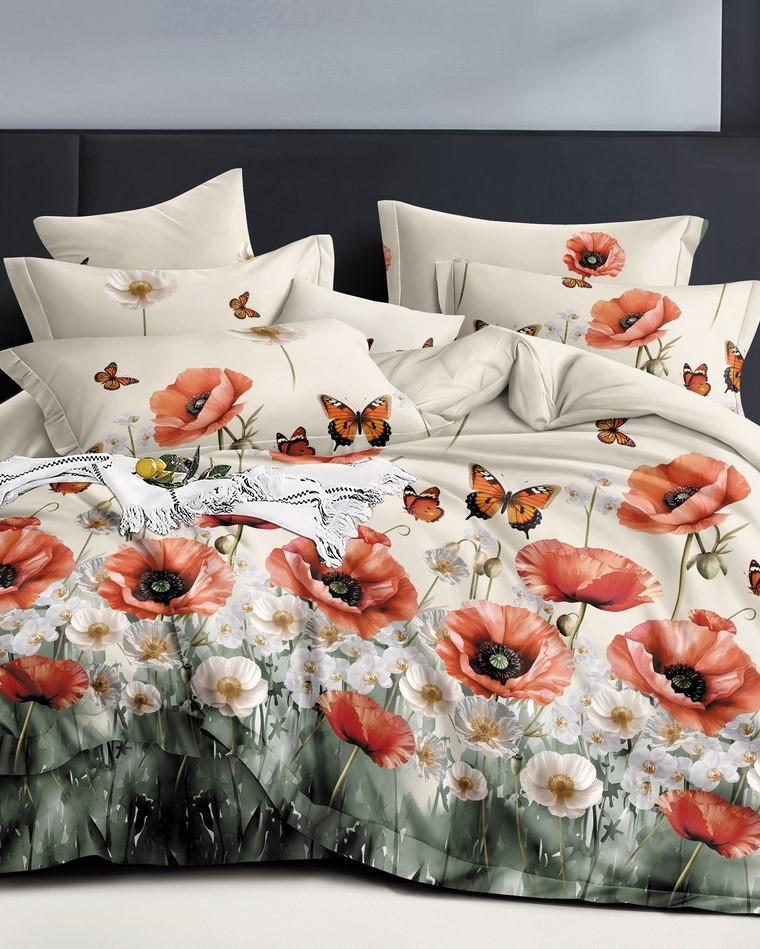 Данный комплект постельного белья выполнен из материала "Бязь". Бязь – хлопчатобумажная ткань , которая имеет множество положительных качеств. Эта ткань не вызывает аллергии , так как при ее производстве используют лишь натуральный хлопок. Зимой такая ткань обладает согревающим эффектом , а летом , в жару, дарит прохладу телу. Постельное белье из бязи прослужит долгую службу. Немаловажно ещё и то, что за бязью легко ухаживать . Бязь легко стирается . Такое постельное белье способно удовлетворить любые эстетическо-художественные пожелания покупателей. * Уважаемые покупатели, обратите внимание, что цвет комплекта, на изображении в нашем каталоге, может несколько отличаться от цвета самого товара, но, зачастую, это отличие незначительно. Так же просим обратить внимание, что расположение рисунка на наволочках так же может незначительно отличаться от изображения комплекта в каталоге. Отсутствуют все отделочные элементы: вышивка, тесьма, «ушки» на наволочках и пододеяльнике.