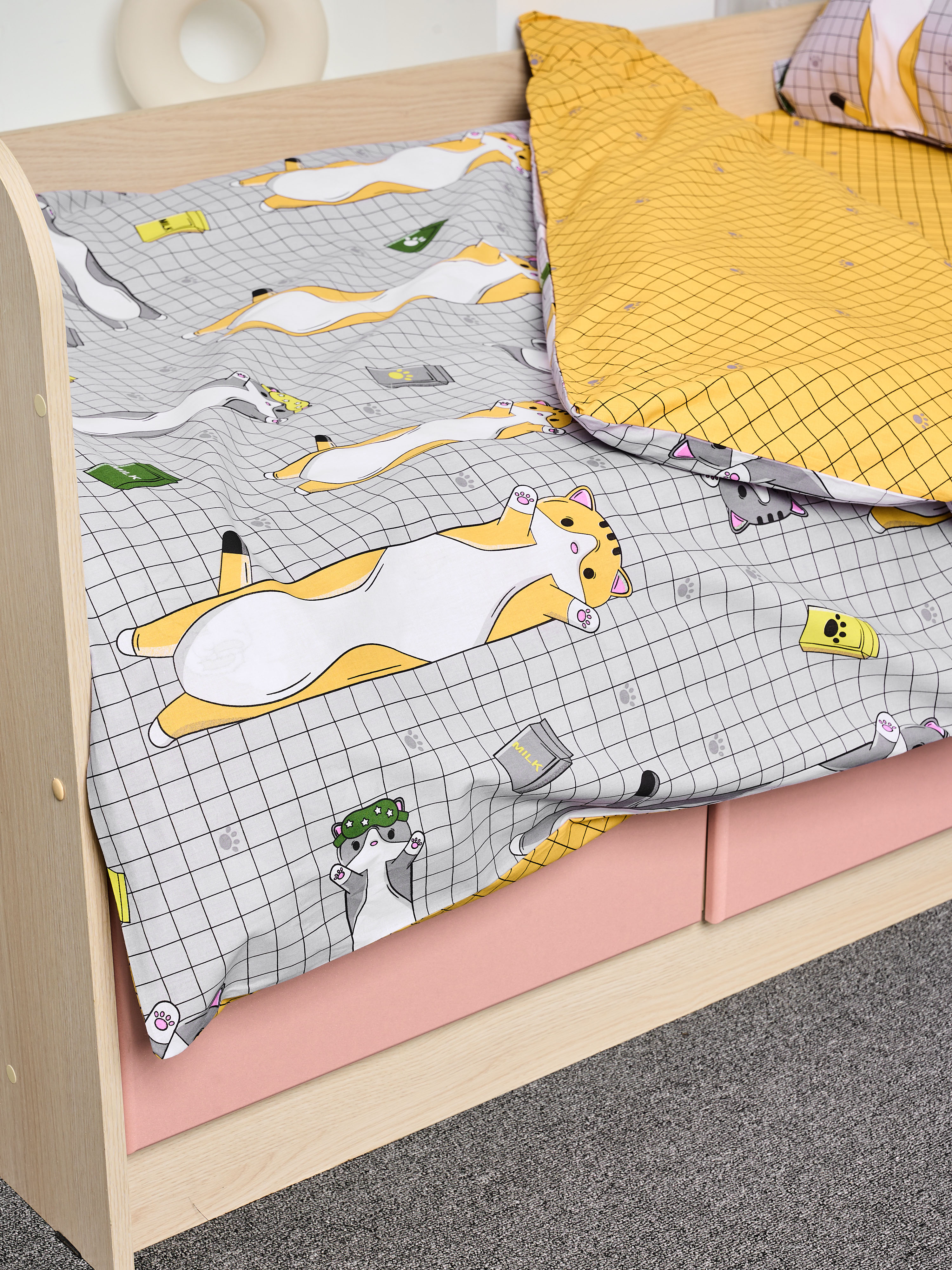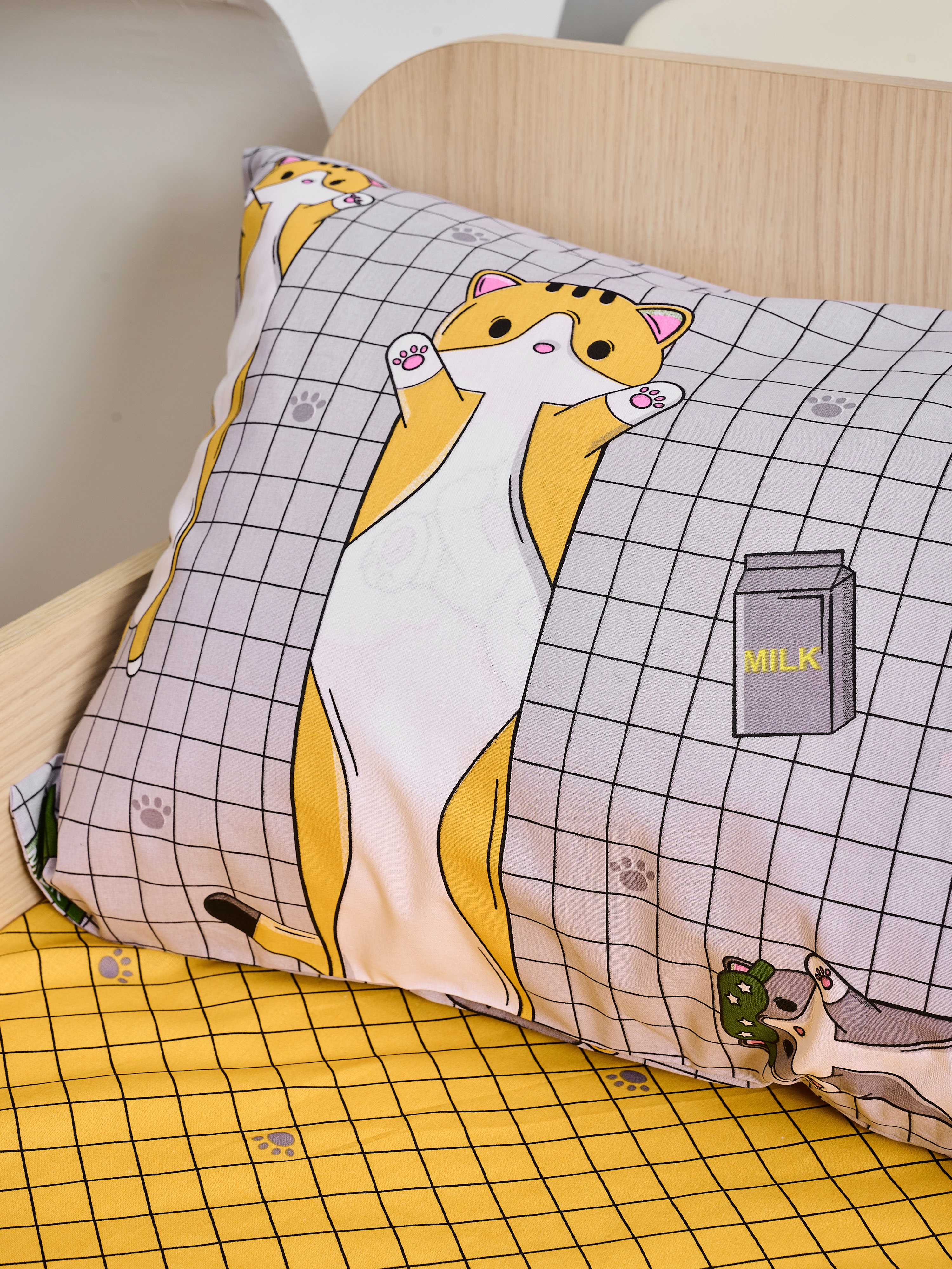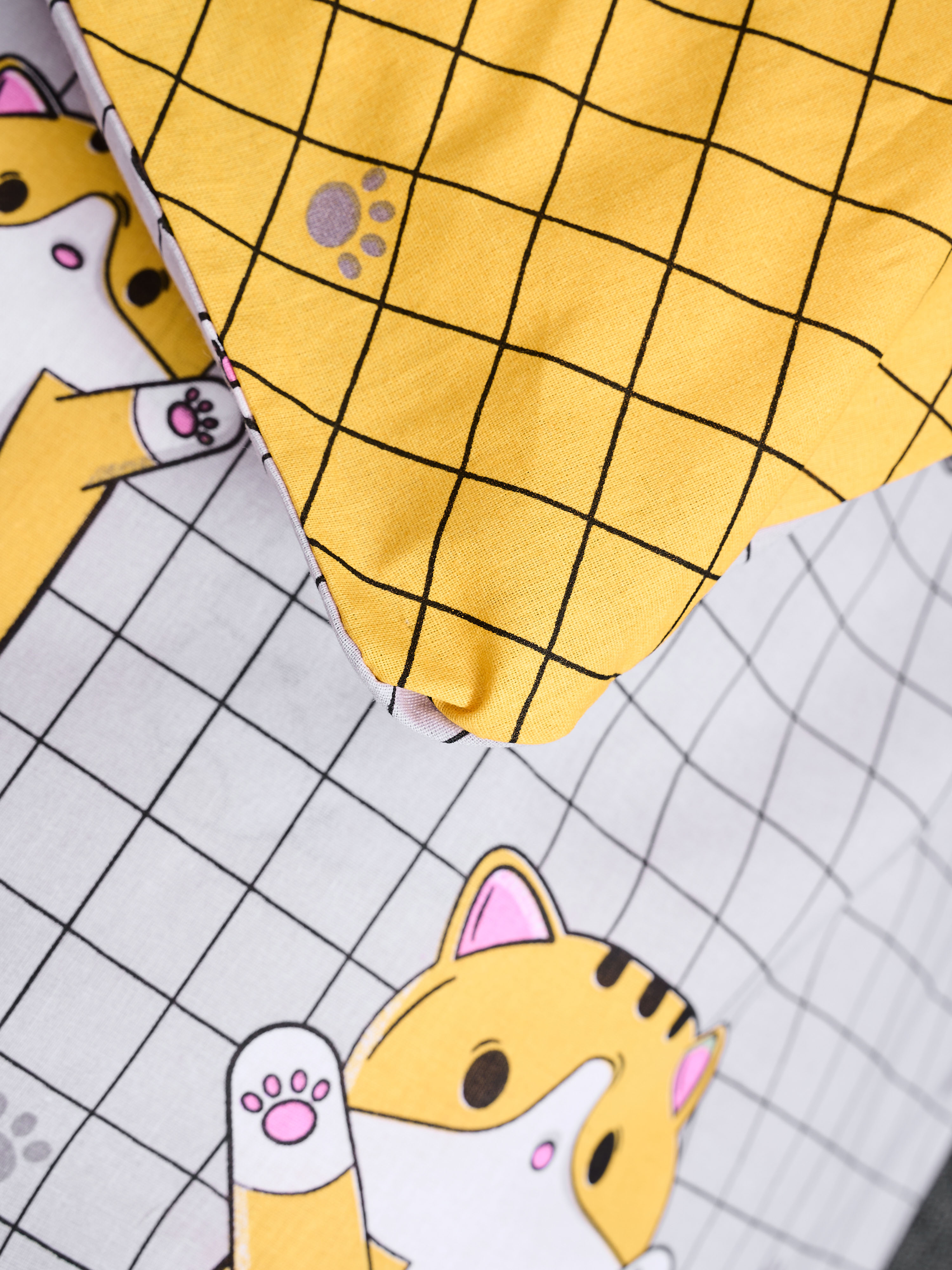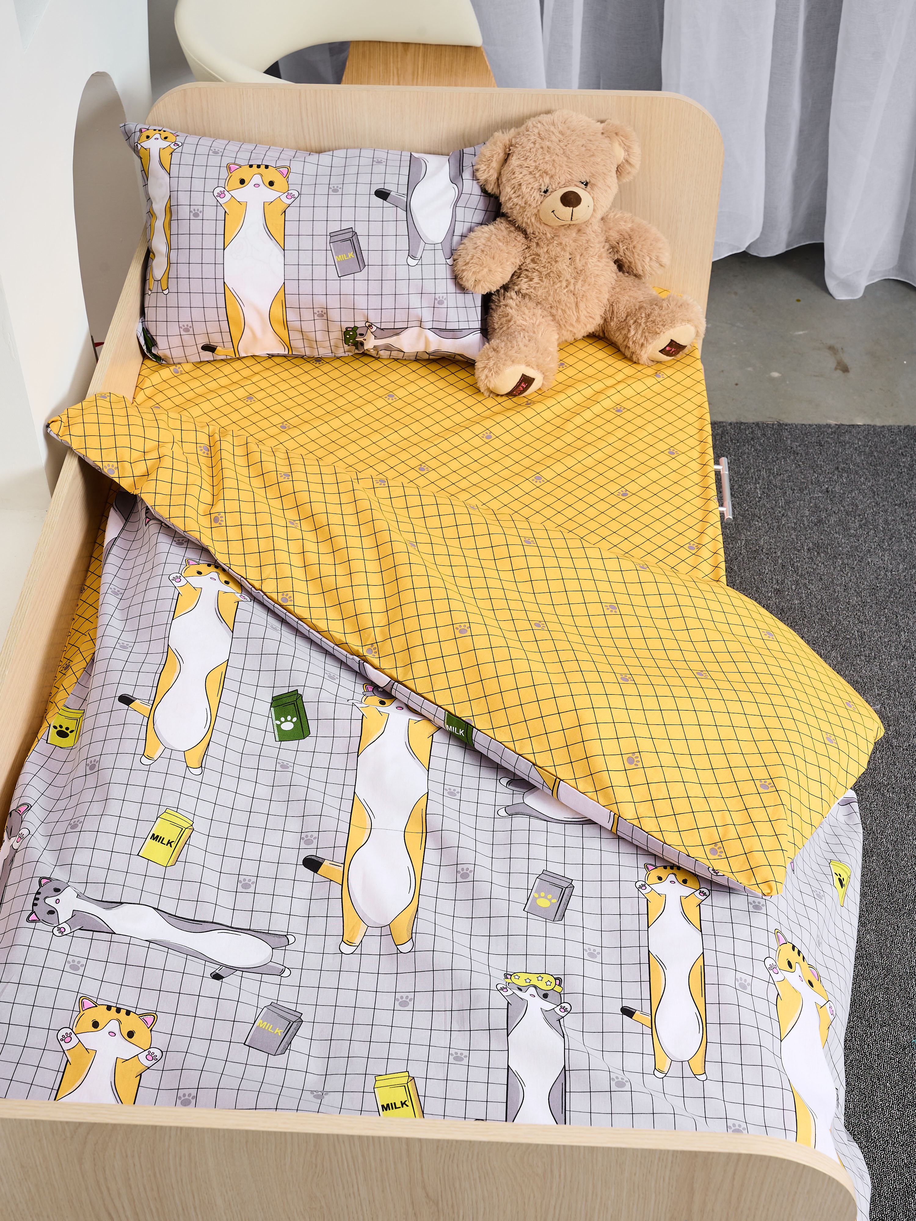 Постельное белье детское поплин с простыней на резинке - Кот-батон