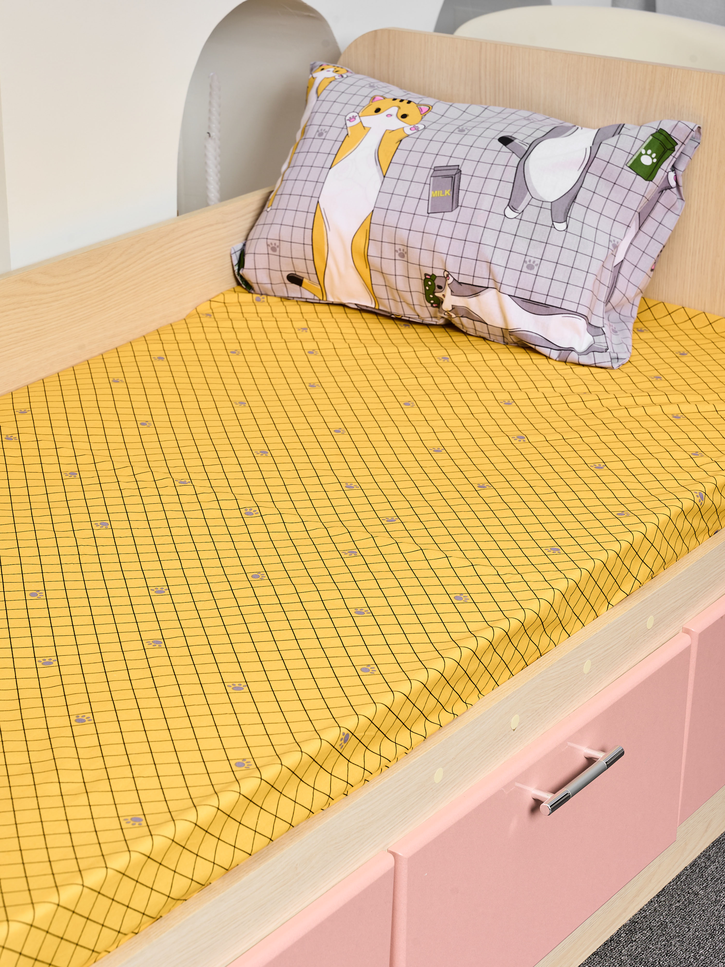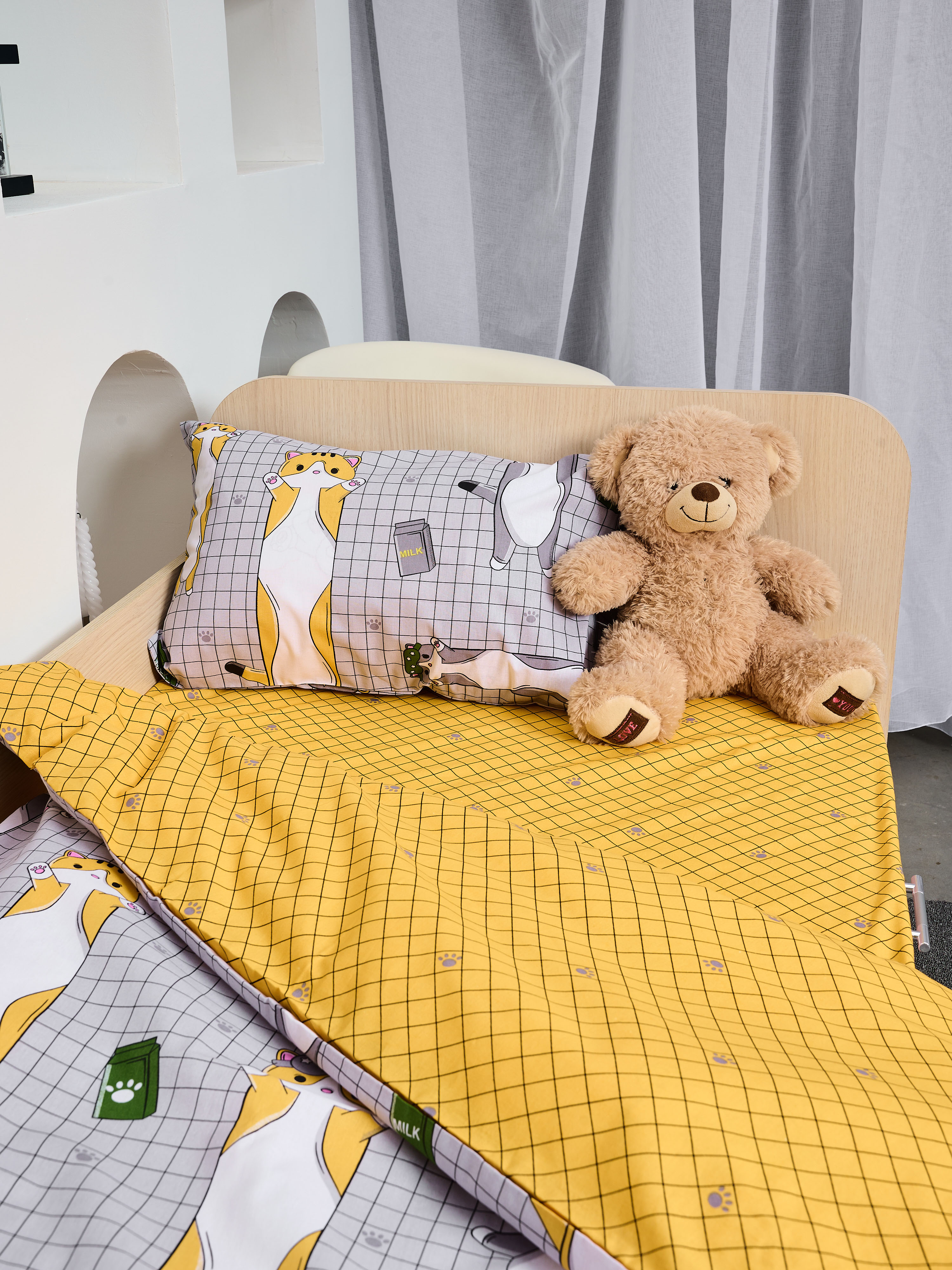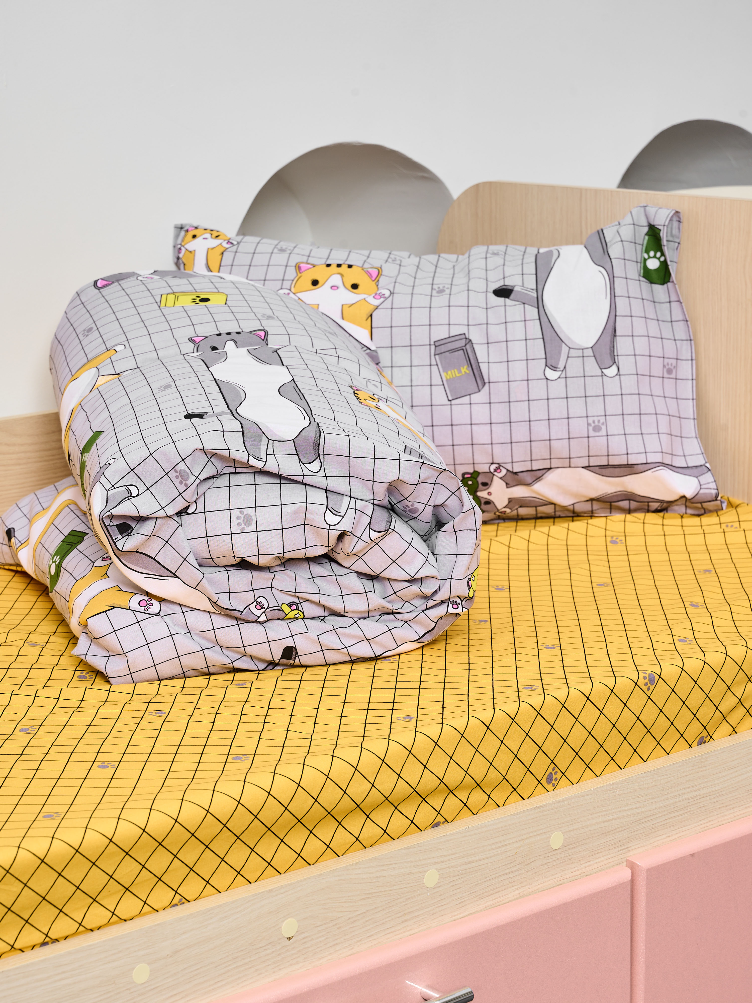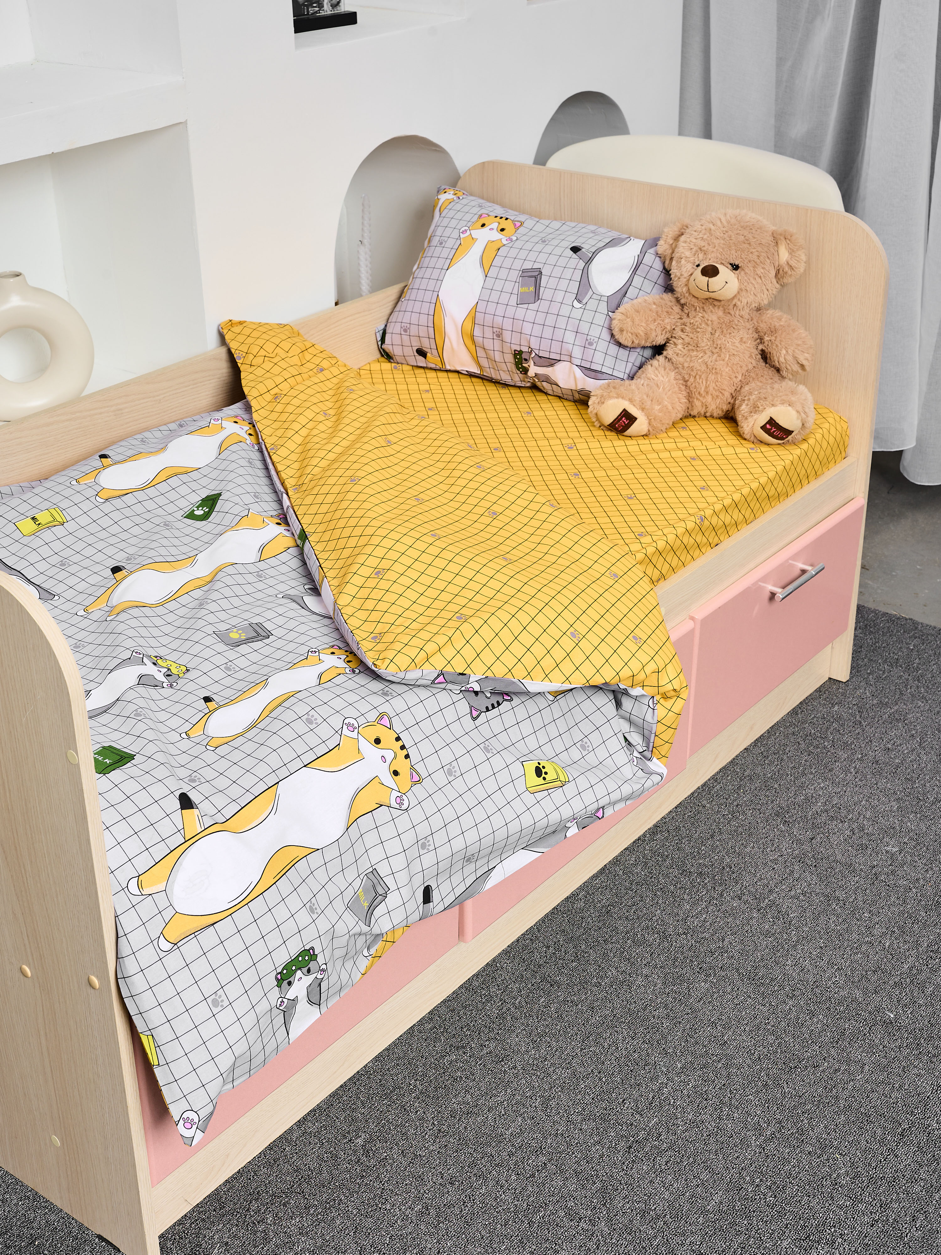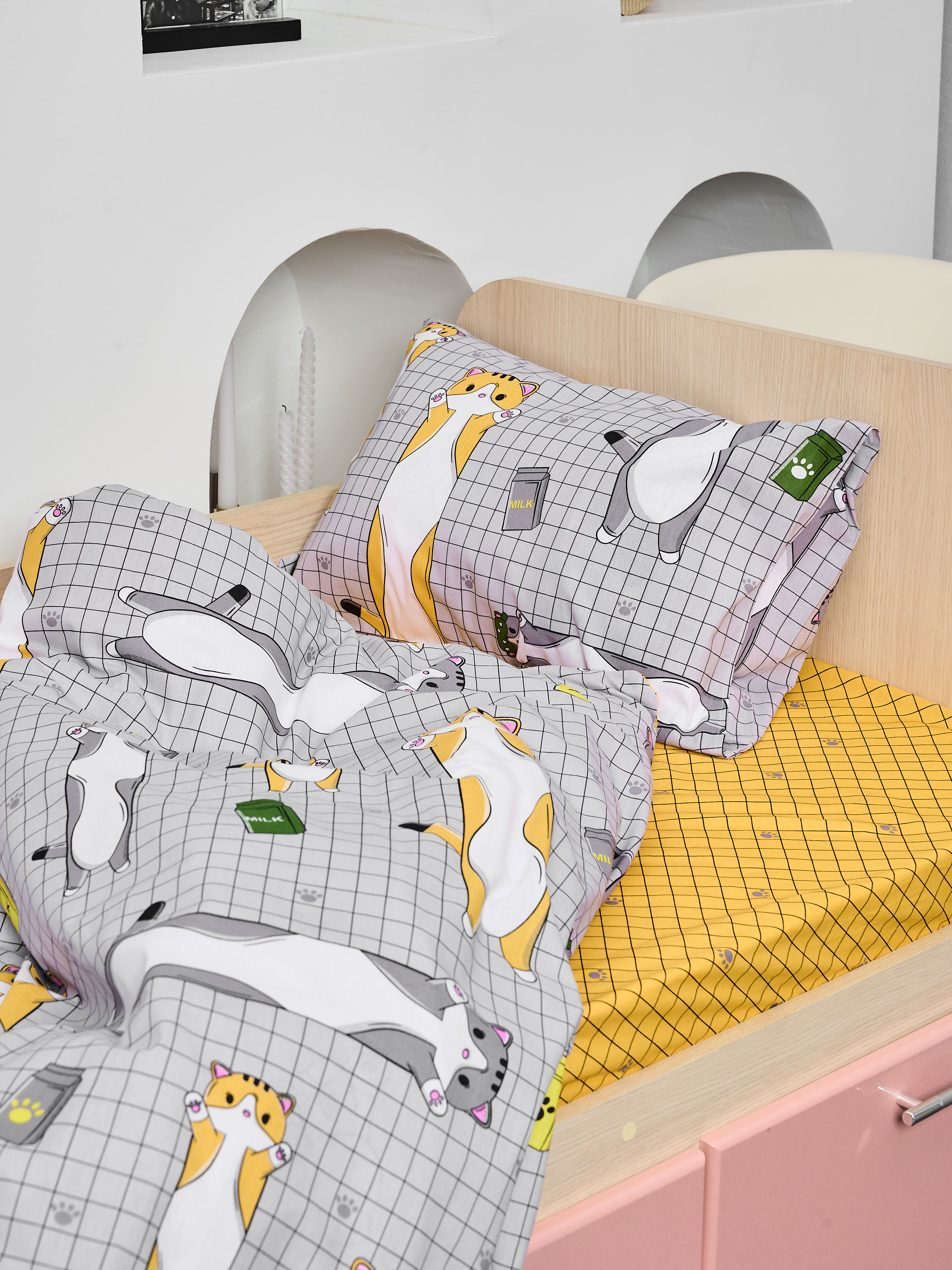 Постельное белье детское поплин с простыней на резинке - Кот-батон