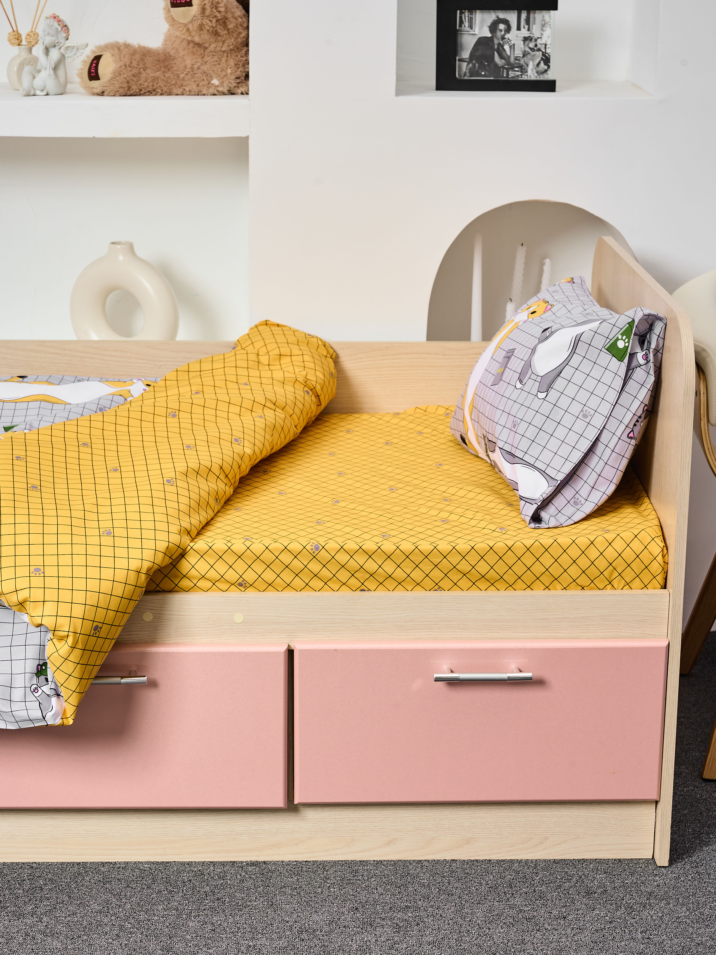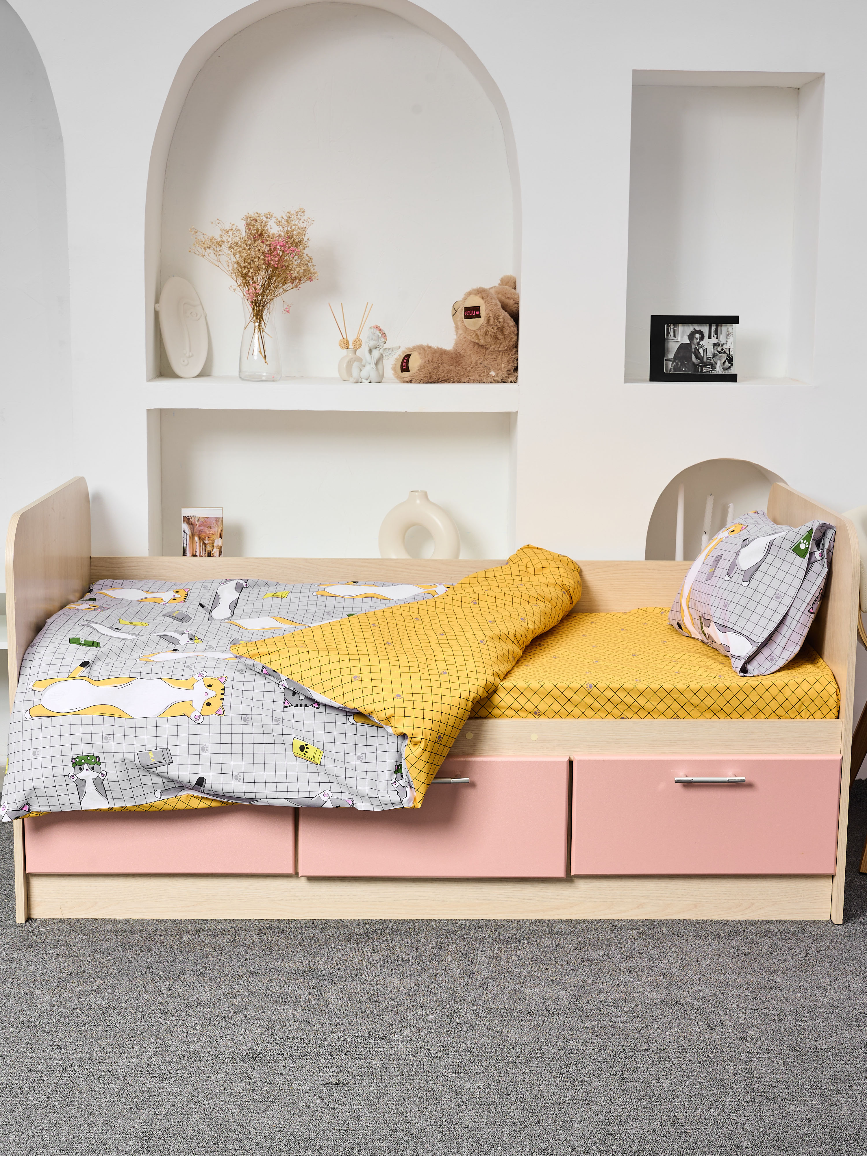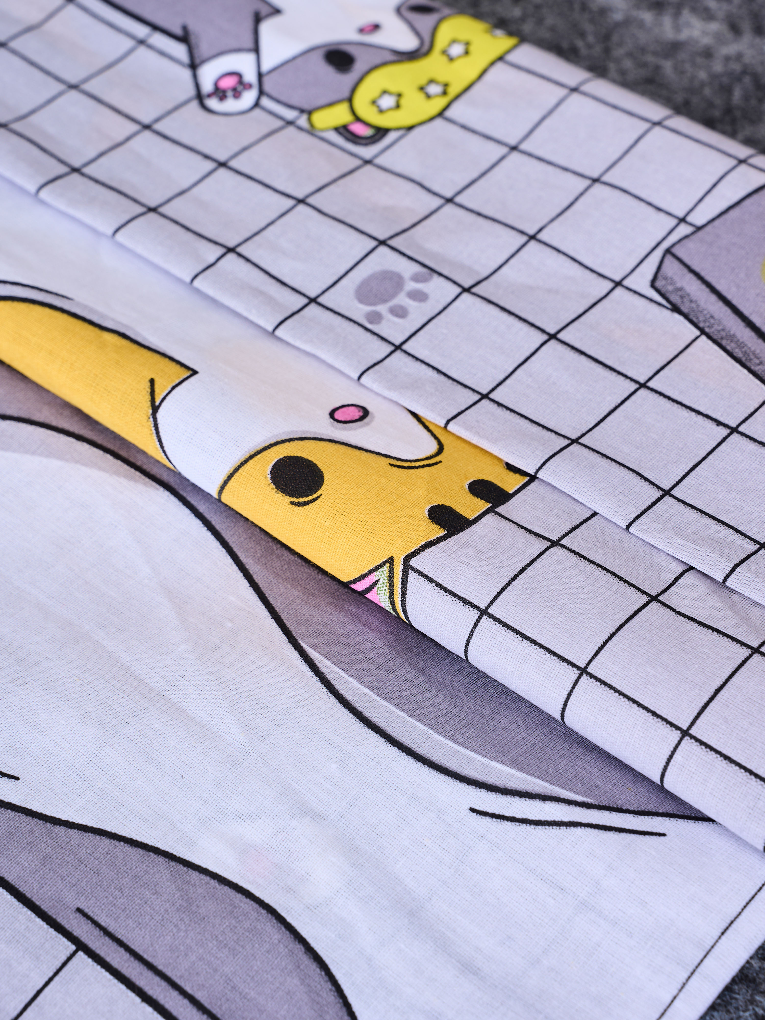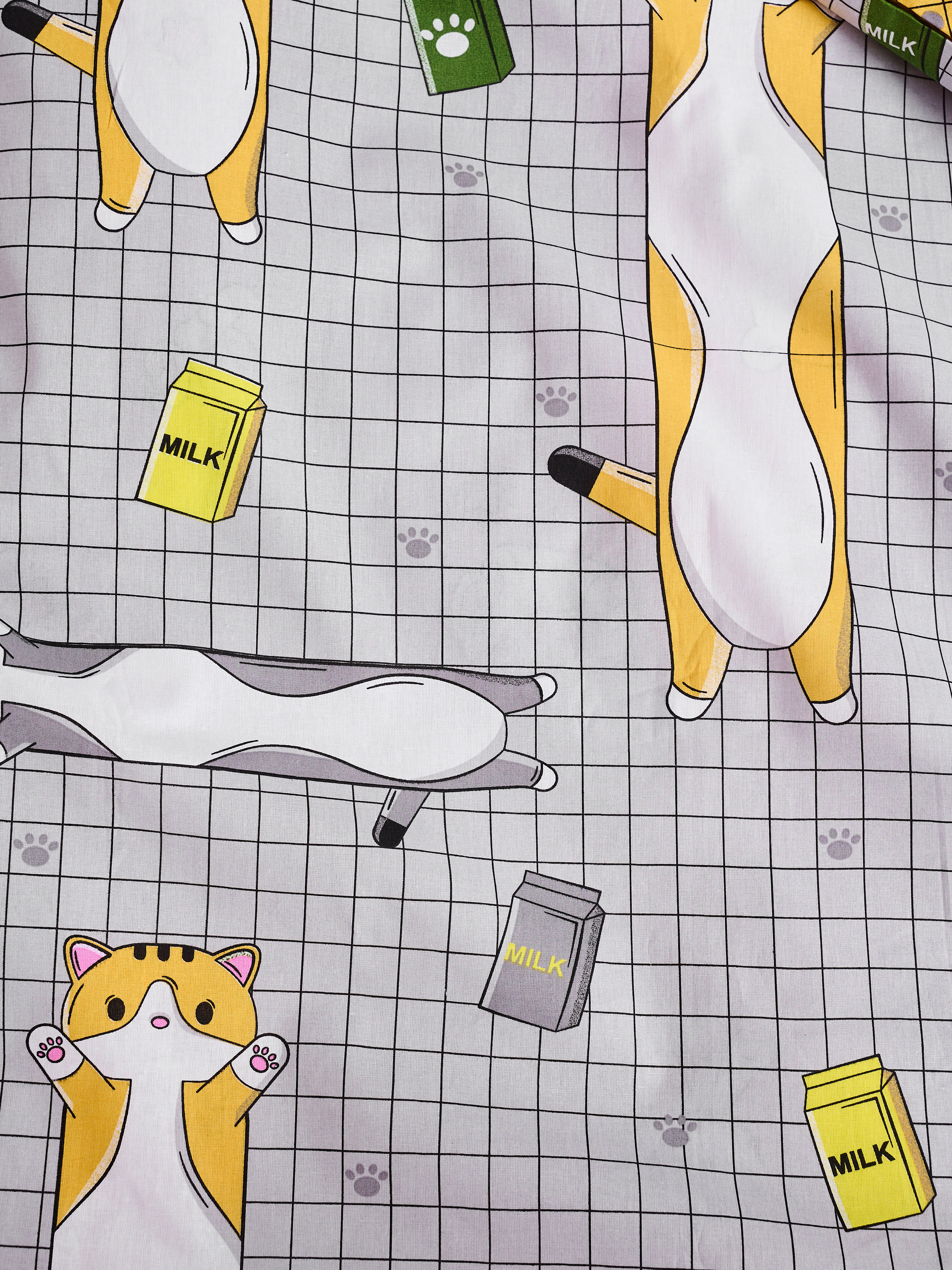 Постельное белье детское поплин с простыней на резинке - Кот-батон