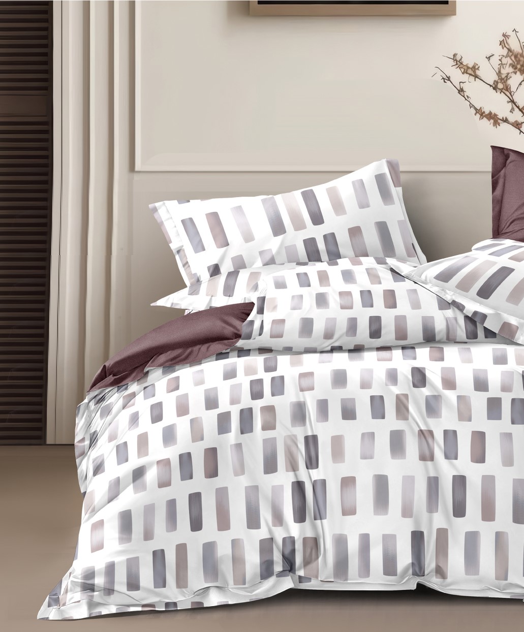 Комплекты постельного белья из поплина отшиваются с наволочками в количестве 2 штук, с застежкой - клапан на наволочках и прорезью на пододеяльнике. Упаковываются в прозрачный пакет ПВХ и комплектуются картонным вкладышем с ярким печатным изображением.
