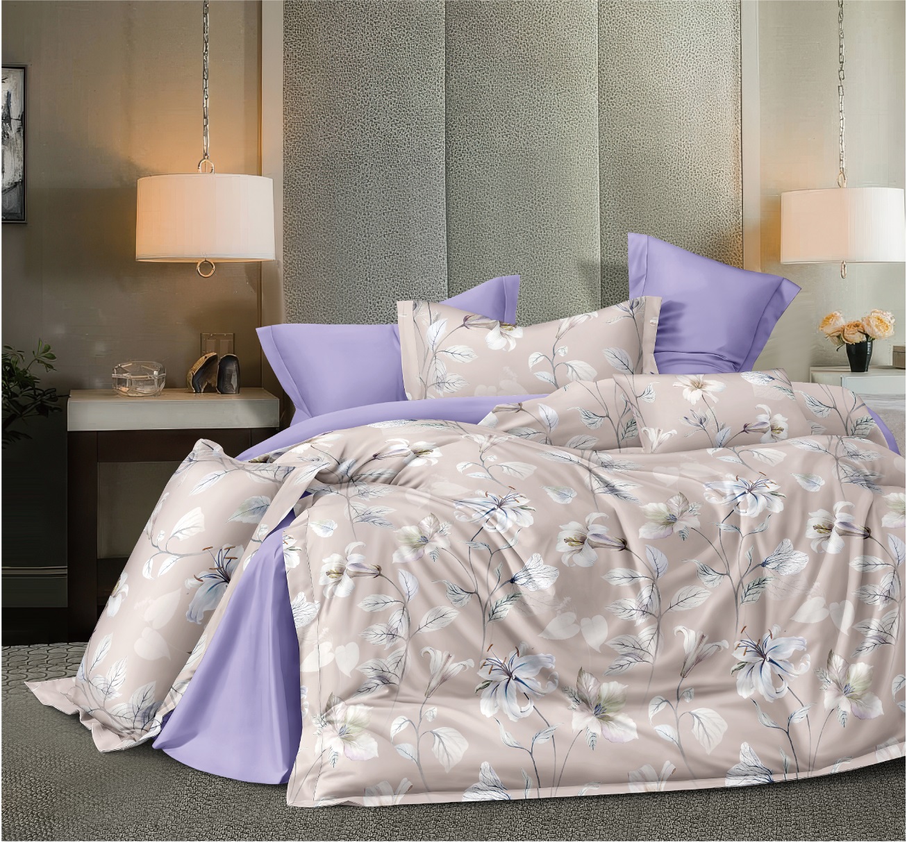 Комплекты постельного белья из поплина отшиваются с наволочками в количестве 2 штук, с застежкой - клапан на наволочках и прорезью на пододеяльнике. Упаковываются в прозрачный пакет ПВХ и комплектуются картонным вкладышем с ярким печатным изображением.