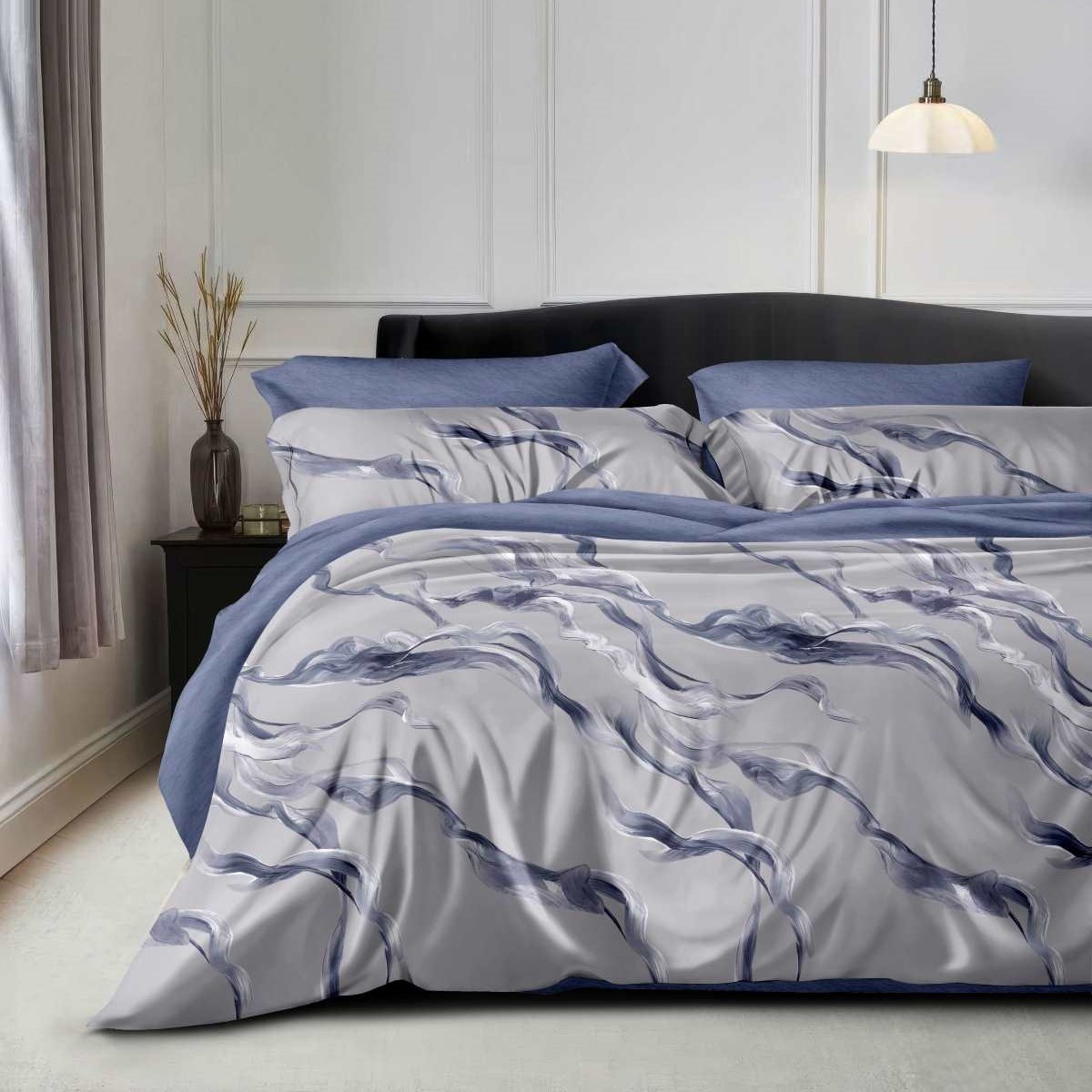 Комплекты постельного белья из поплина отшиваются с наволочками в количестве 2 штук, с застежкой - клапан на наволочках и прорезью на пододеяльнике. Упаковываются в прозрачный пакет ПВХ и комплектуются картонным вкладышем с ярким печатным изображением.