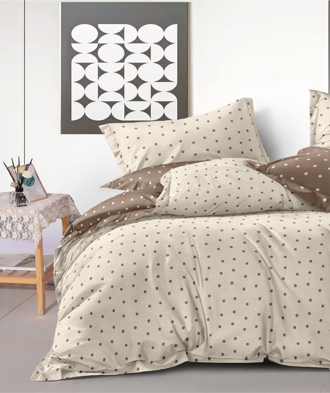 Комплекты постельного белья из поплина отшиваются с наволочками в количестве 2 штук, с застежкой - клапан на наволочках и прорезью на пододеяльнике. Упаковываются в прозрачный пакет ПВХ и комплектуются картонным вкладышем с ярким печатным изображением.