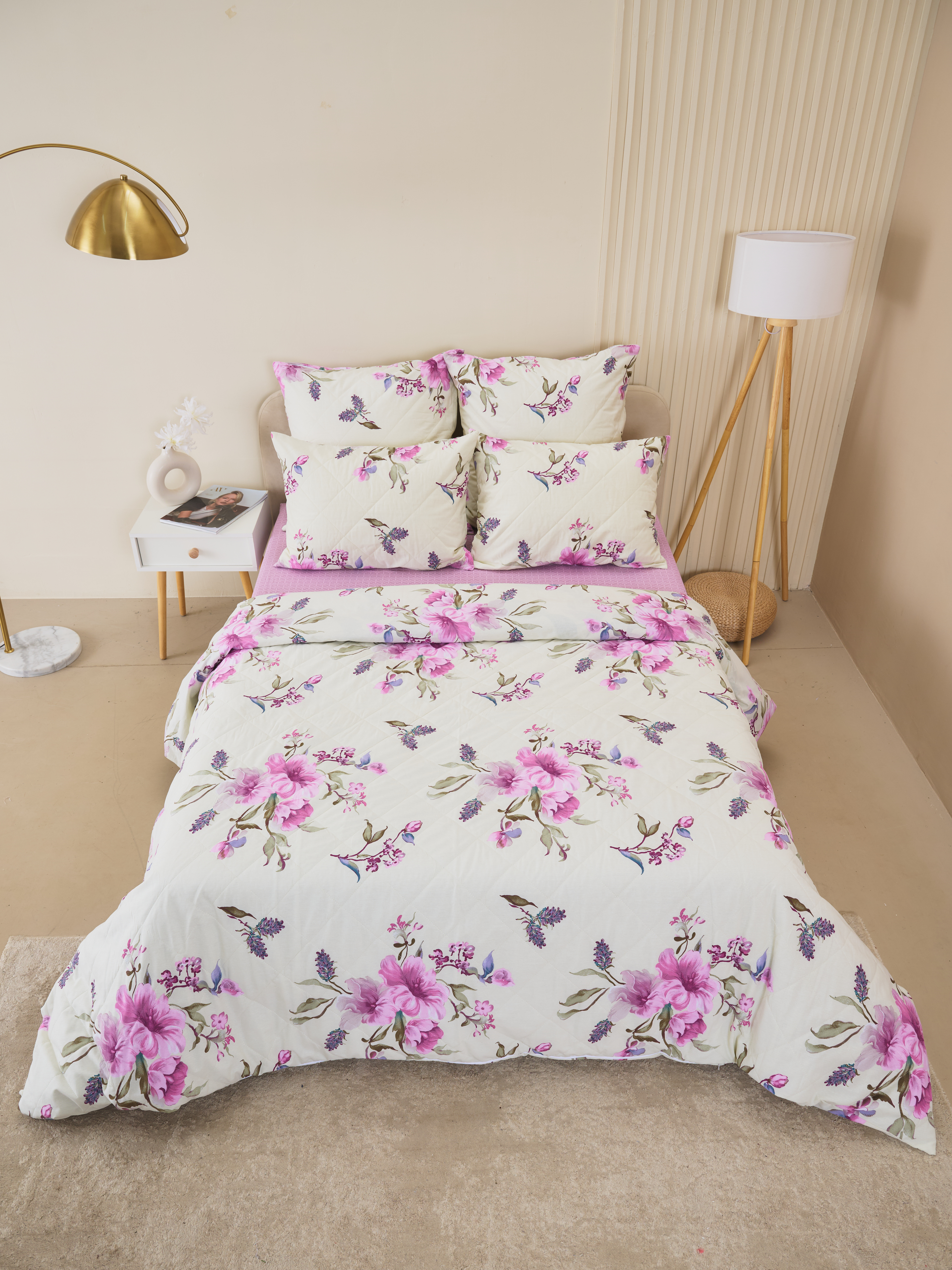Постельное белье зима-лето из поплина с простыней на резинке - Джина
