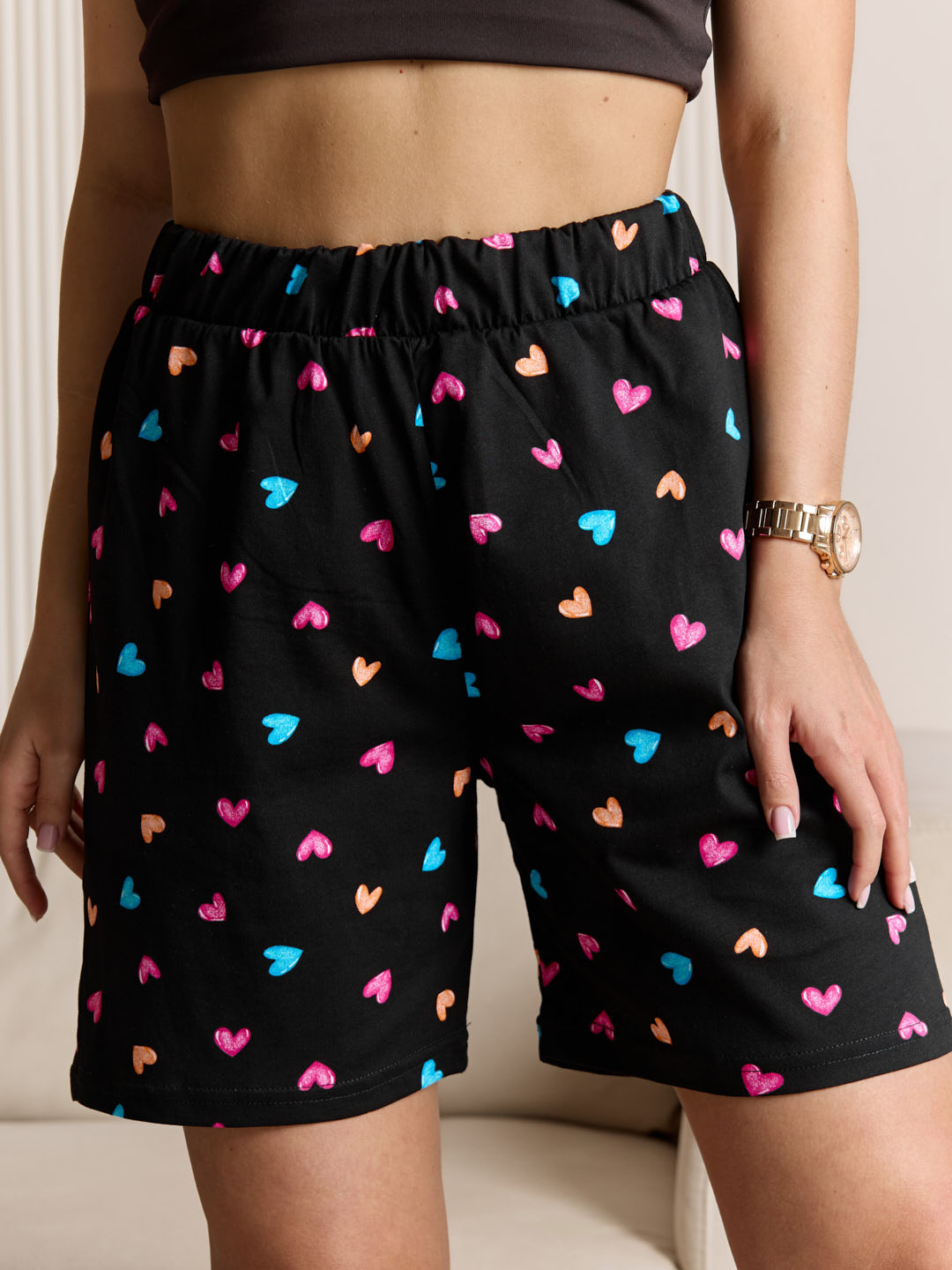 Шорты из хлопка станут отличным дополнением Вашего домашнего образа. Яркий, насыщенный принт в мелкое сердечко, добавит кокетливости образу, а приятная ткань подарит комфорт при долгом ношении.