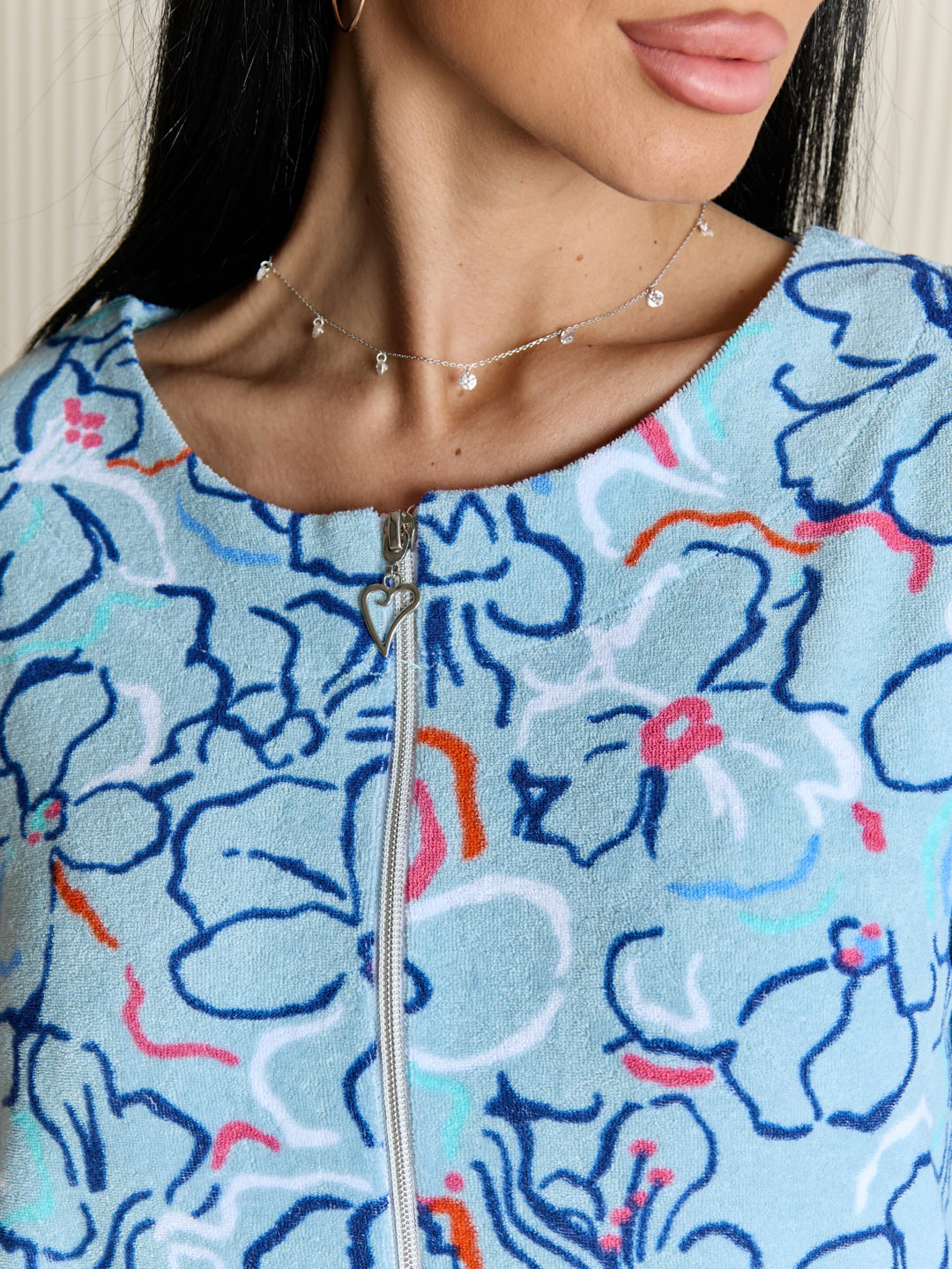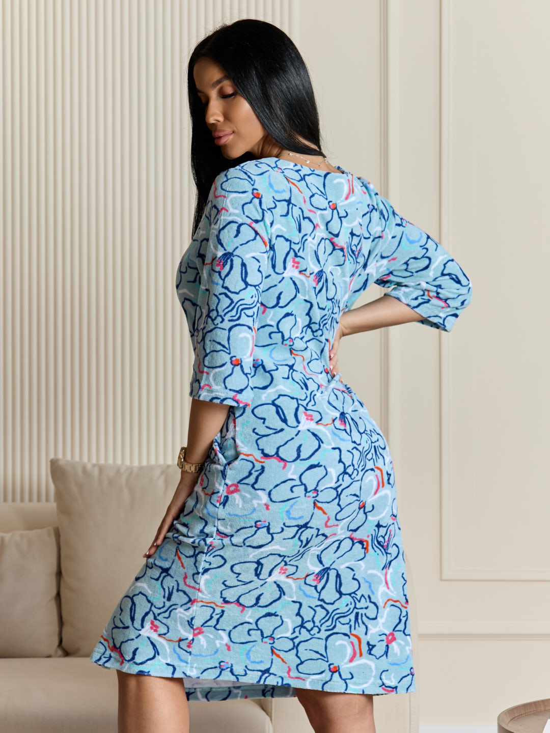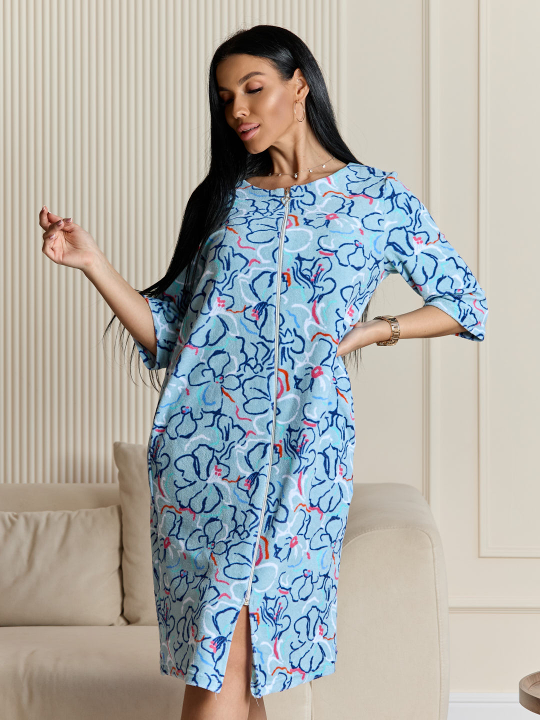 Домашний халат на молнии из турецкой махры, длиной до колена, с карманами в боковых швах, рукавом 3/4 и О-образной горловиной. Наш великолепный халат станет отличным подарком маме, бабушке, сестре. Приятная расцветка будет радовать глаз, а мягкая махра тело.