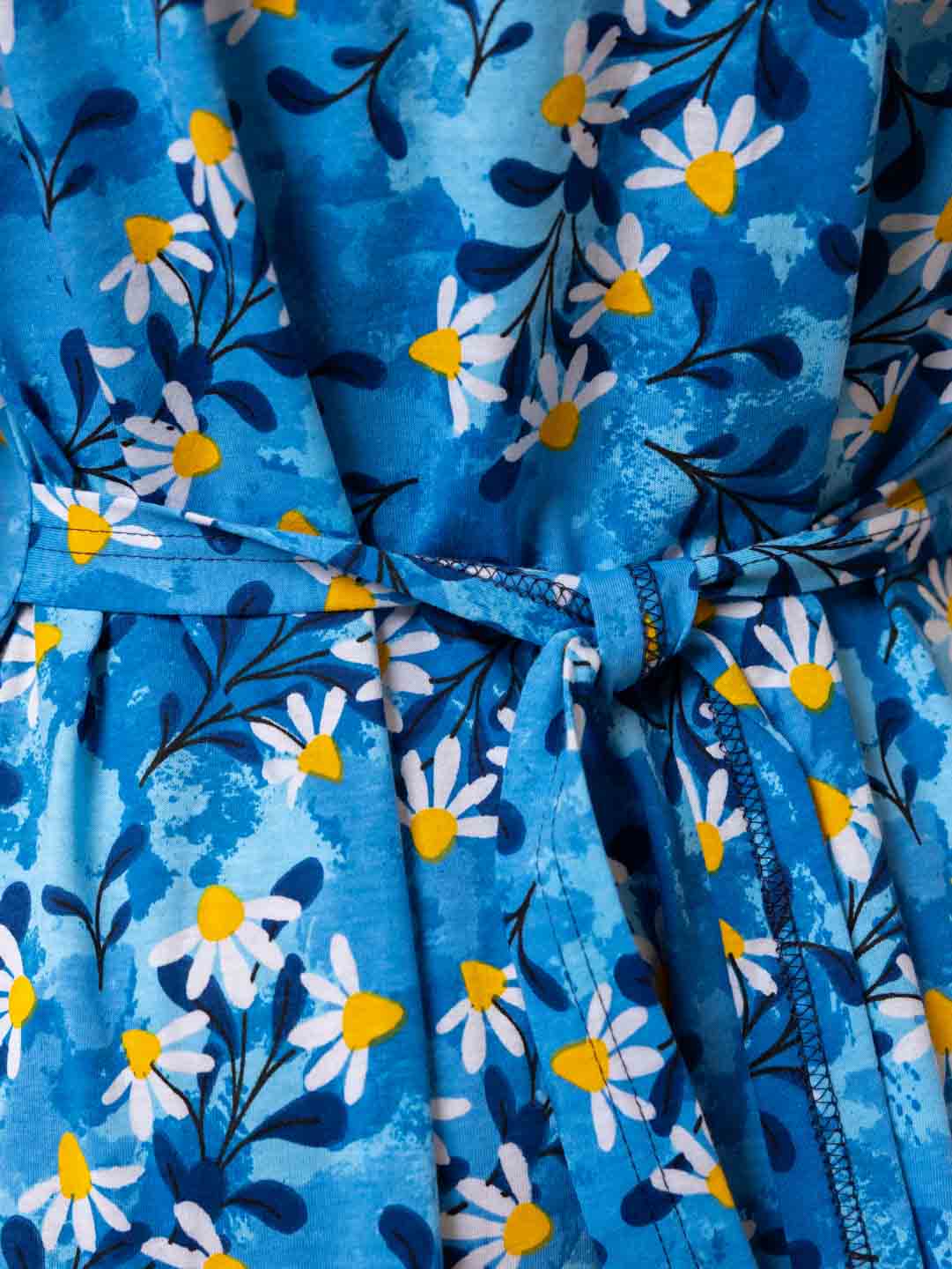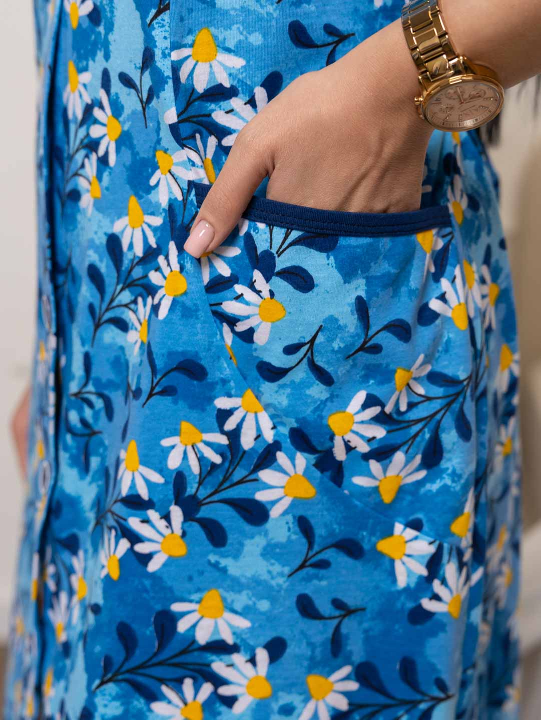 Халат женский из трикотажа, длиной до уровня колена. Рукав - втачной, длиной 1/2. Вырез горловины О-образный. Застежка на пуговицы.
