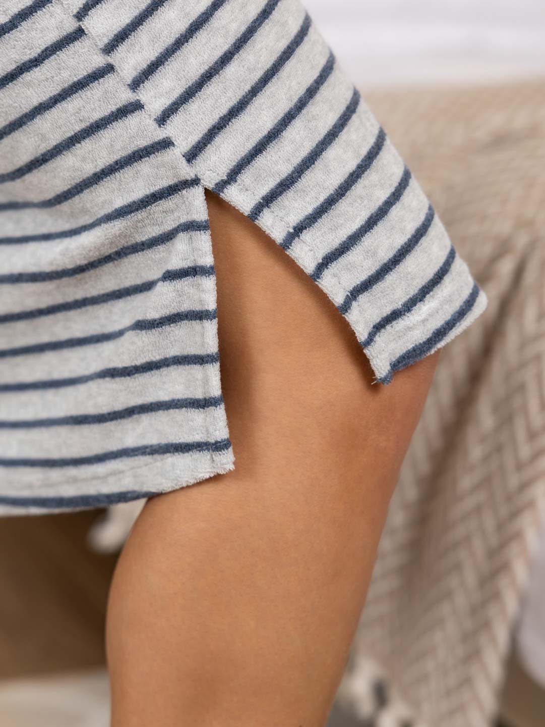 Этот элегантный халат из махры в бежевого цвета с полосками - идеальное сочетание комфорта и стиля. Изготовлен из высококачественного материала, он нежно обволакивает тело, создавая ощущение уюта и тепла. Широкий пояс на талии подчеркивает женскую фигуру, а модный дизайн в полоску делает этот халат стильным аксессуаром для дома. Нежные оттенки бежевого цвета придадут вашему образу изысканности и изящности. Удобство и элегантность - в одном предмете одежды!