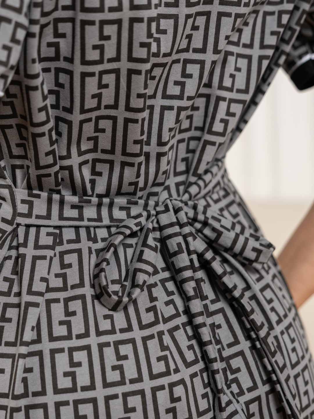 Халат из кулирки на молнии приталенного силуэта с контрастной отделкой по накладным карманам, горловине и рукавам. Халат средней длины, с пояском сзади. Рост модели на фото 165см.